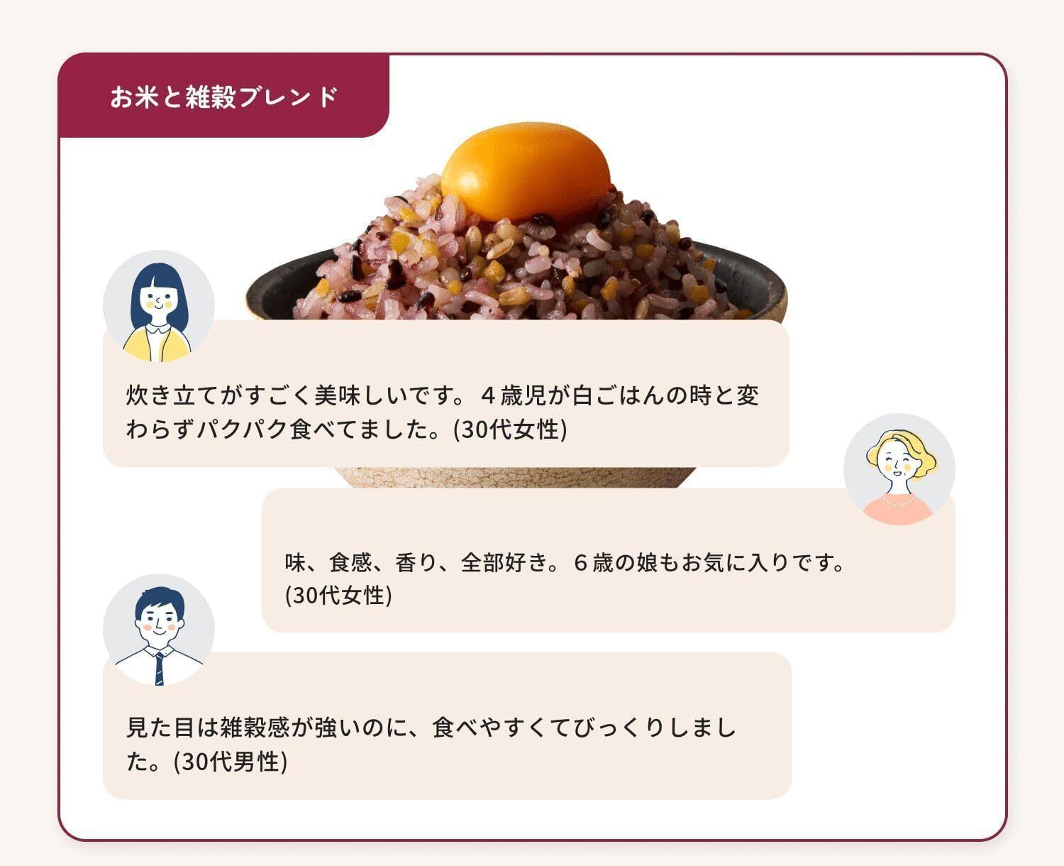 原材料・成分 うるち米(国内産)、加工玄米(玄米(国内産))、もち麦、オーツ麦、とうもろこし、黒米 ※お米や雑穀の産地・年産・品種によって、ご飯の食味や見た目が異なる場合がありますが、品質には問題ございません。