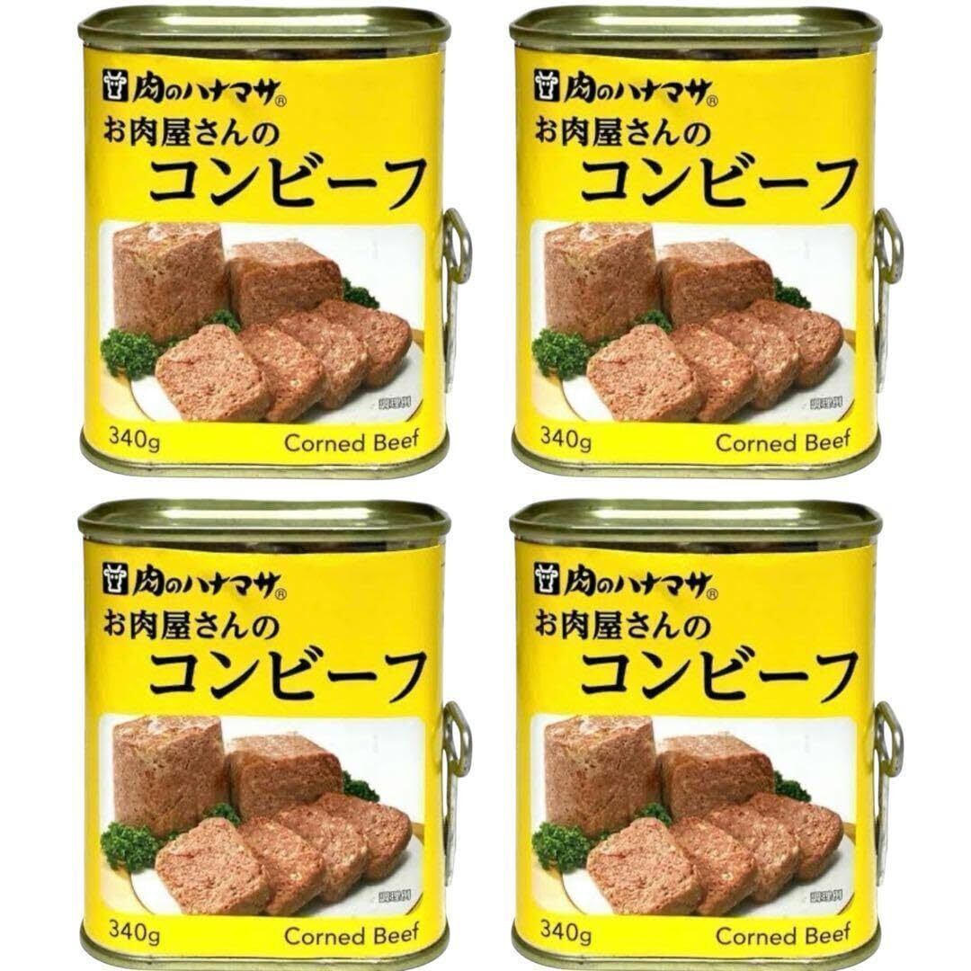 肉のハナマサ お肉屋さんのコンビーフ 340g ×4缶セット 牛肉使用 保存食 非常食 おつまみ サンドイッチ 料理用