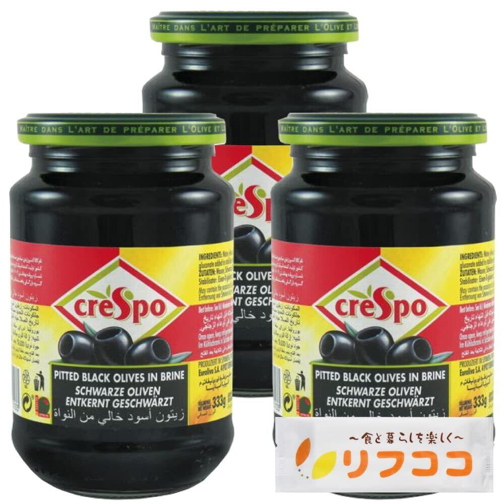 クレスポ ブラックオリーブ 種抜き 160g×3個セット 瓶入り スペイン オリジナルおしぼり付き