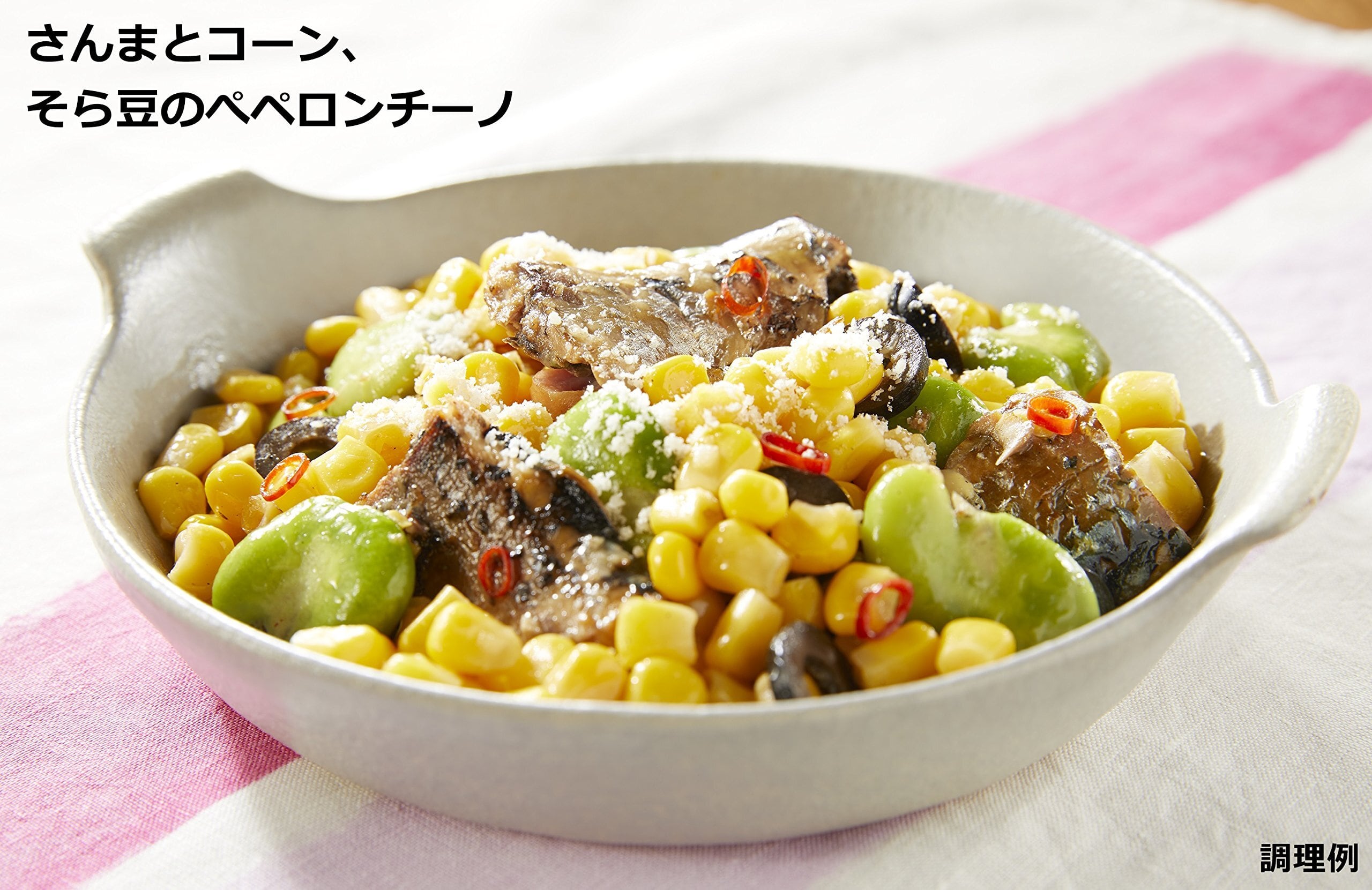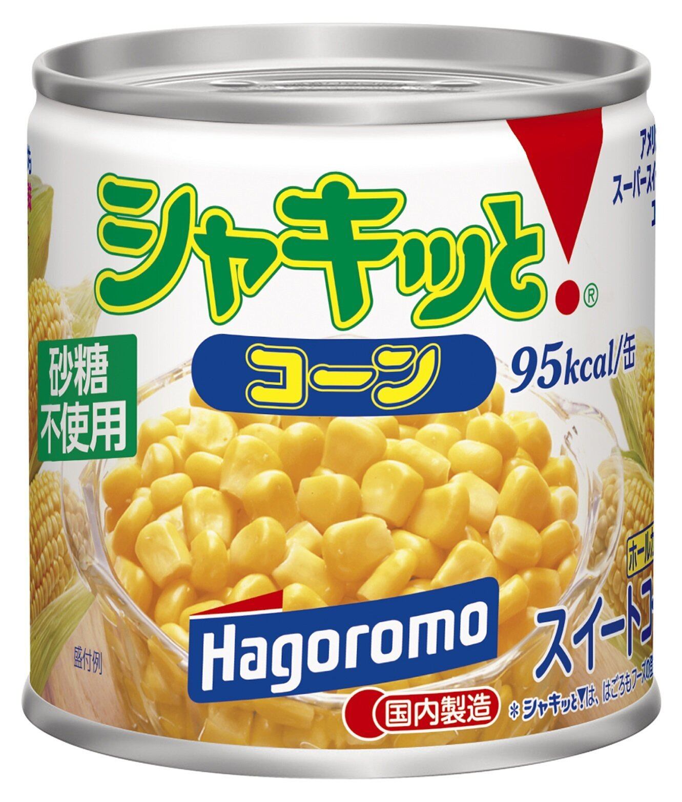 アメリカで収穫後4時間以内に急速凍結したスイートコーンを、国内で選別後缶詰にしました。