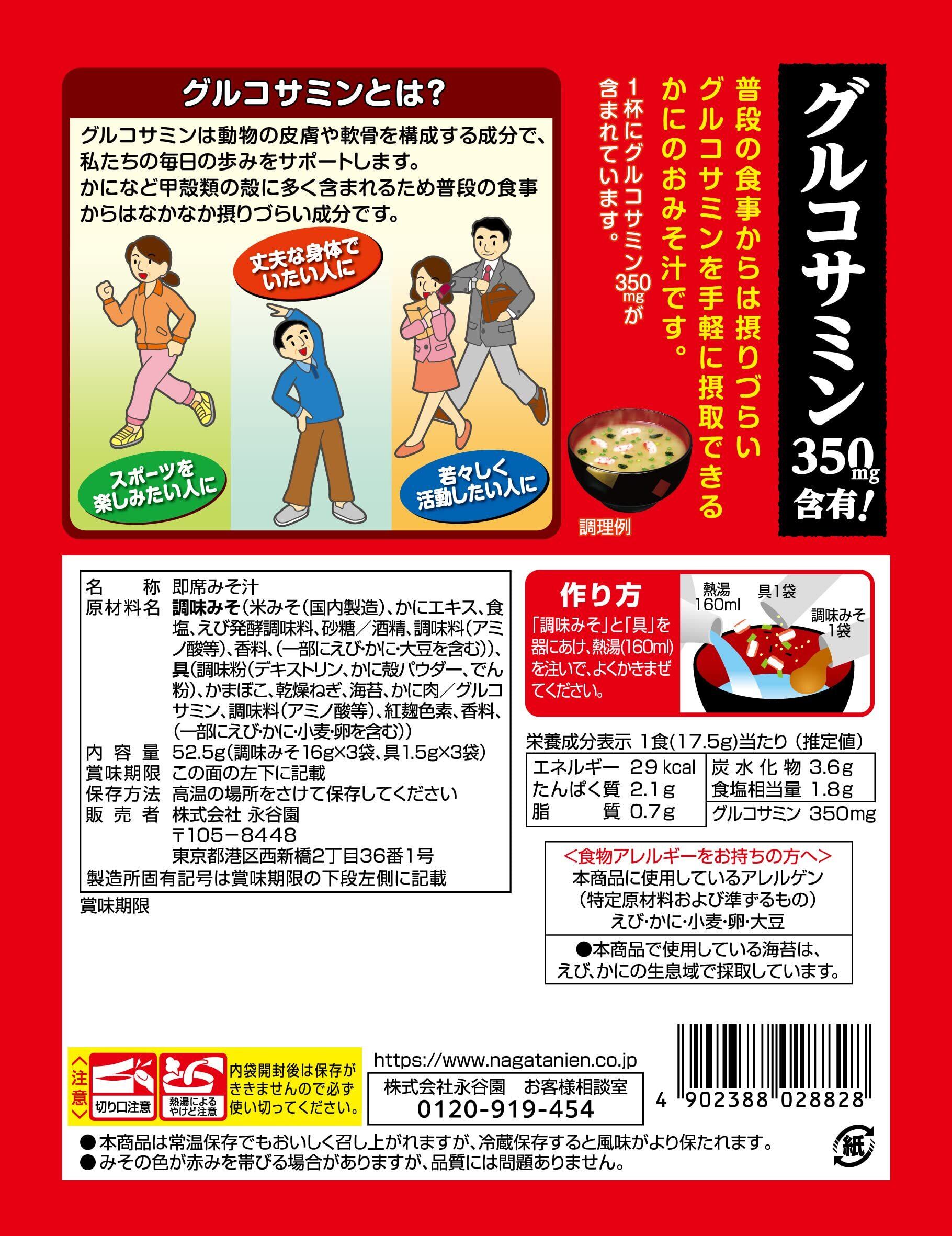 「永谷園 かにのちからみそ汁 」は、1杯にグルコサミン350mlを含有しているみそ汁です。