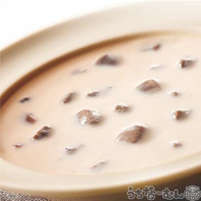 305g / 3人前 ×12缶 原材料名 マッシュルーム、植物油、小麦粉、食塩、クリーム(乳製品)、マッシュルームフレーバー(小麦・乳成分・大豆を含む)、ホエイパウダー(乳製品)、バター、大豆たんぱく、サワークリームパウダー(乳成分を含む)、酵母エキス/増粘剤(加工デンプン)、調味料(アミノ酸等)、カラメル色素(小麦由来)、酸味料、香料 カットしたマッシュルームが入った、マッシュルームの香り豊かなクリーミーなスープです。 作り方 スプーン等で中身を鍋にあけ、空き缶1杯分(約300ml、お好みで調節)の牛乳を徐々に加えながら中火でゆっくりかきまぜ温めます。 栄養成分表示(濃縮スープ100g当たり)推定値 エネルギー:77kcal、たんぱく質:1.0g、脂質:5.8g、炭水化物:5.2g、食塩相当量:1.3g うちなーむんシール付き