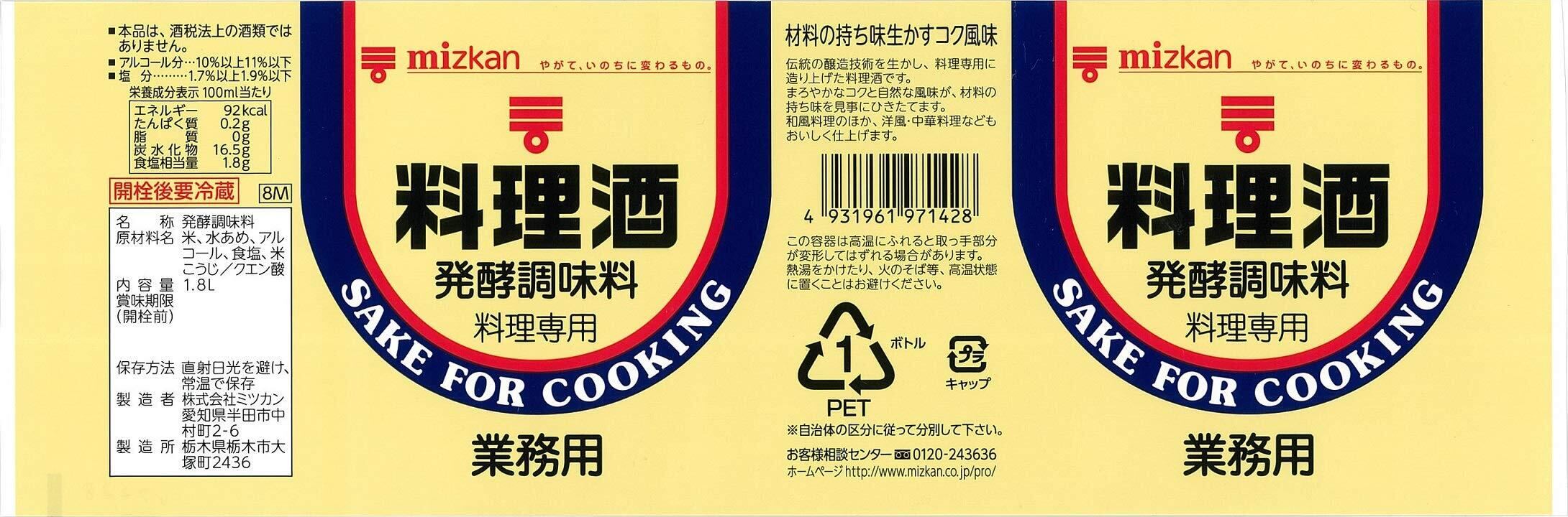 ミツカン 料理酒 (ペットボトル) 1.8L