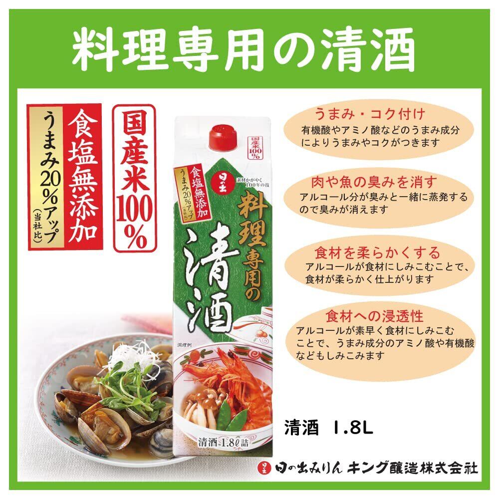 キング醸造 日の出 料理専用の清酒パック 1800mlは、料理用のお酒トップシェアの日の出が造った料理専用の清酒になります。