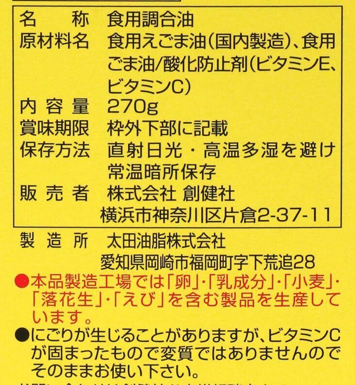 食用えごま油(国内製造)、食用ごま油/酸化防止剤(ビタミンE、ビタミンC)