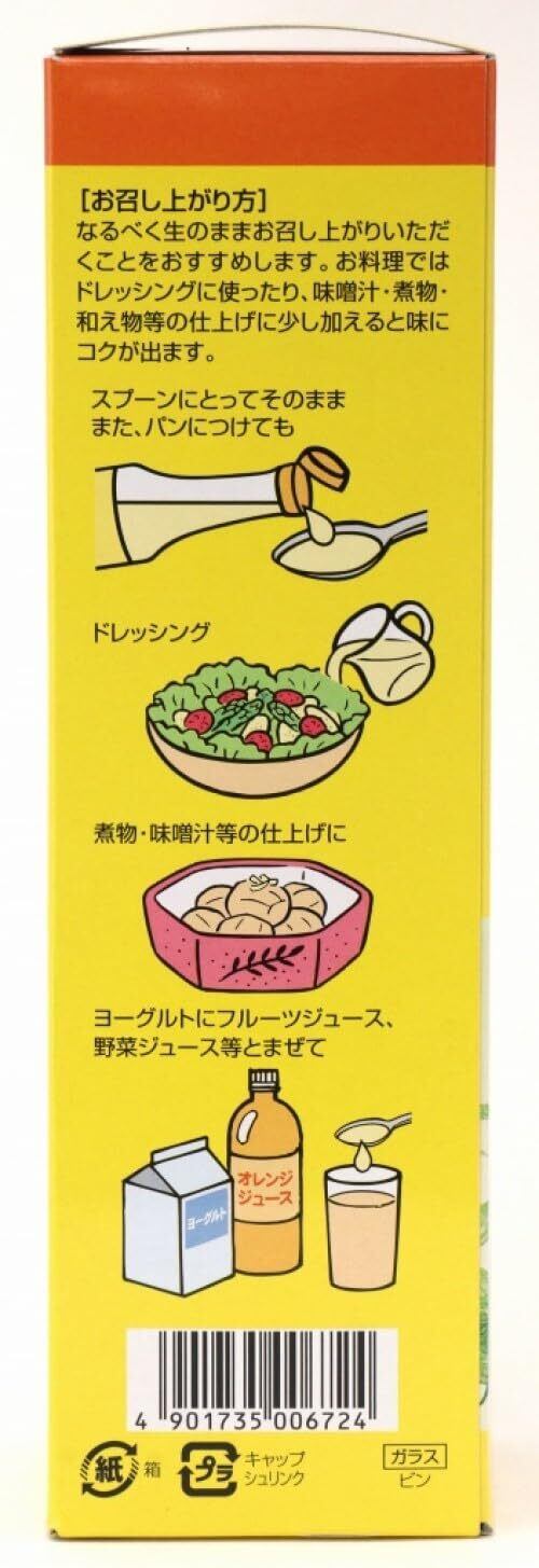 創健社 えごま一番 (しそ油) 270gは、なるべく生のままお召し上がりいただくことをおすすめいたします。 ○スプーンにとってそのままで、又お料理ではドレッシングに使ったり、味噌汁・煮物・和え物等の仕上げに少し加えると味にコクが出ます。