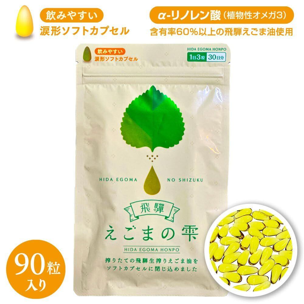 飛騨えごまの雫 ソフトカプセル, α-リノレン酸含有, 90粒入り, 1日3粒30日分