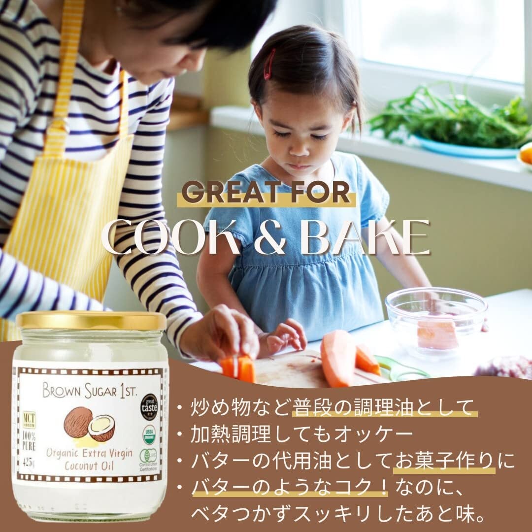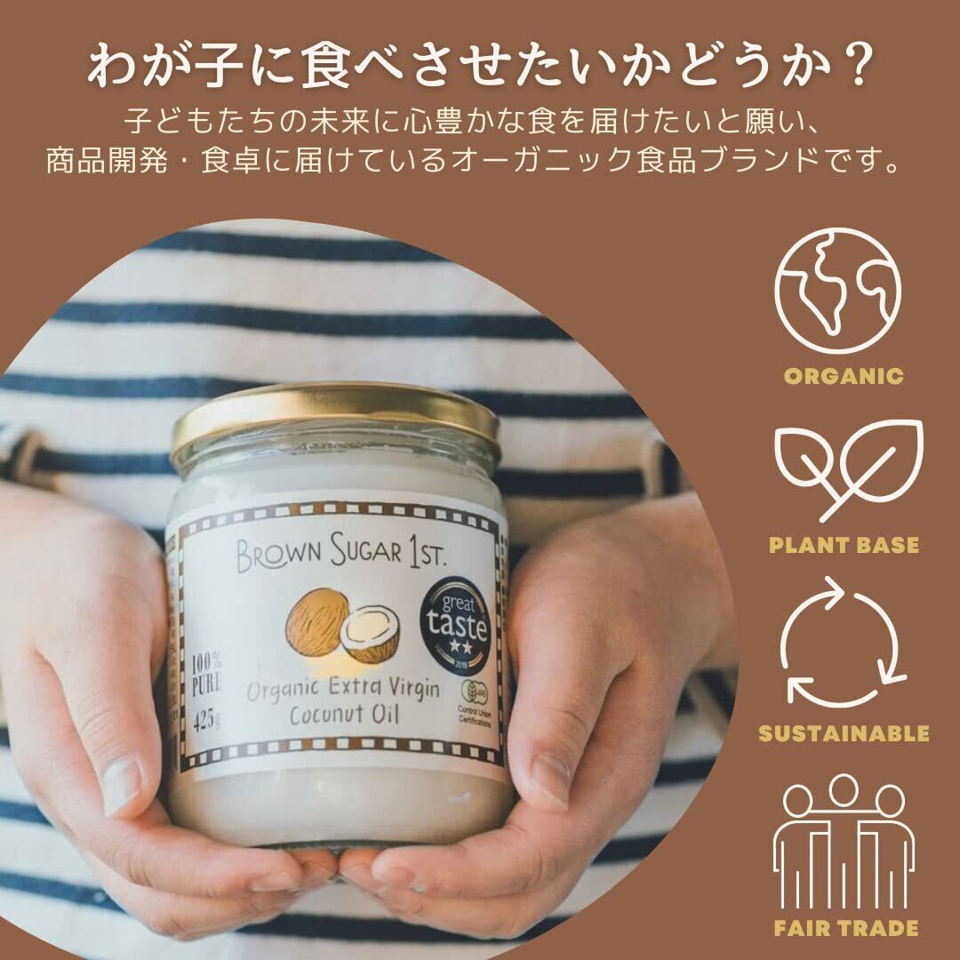 有機JASエクストラバージンココナッツオイル(425g瓶)オーガニック 天然MCTオイル 61%含有 無化学調味料 無添加 砂糖不使用 非加熱 中鎖脂肪酸 低温圧搾 ブラウンシュガーファースト 425g 1 本