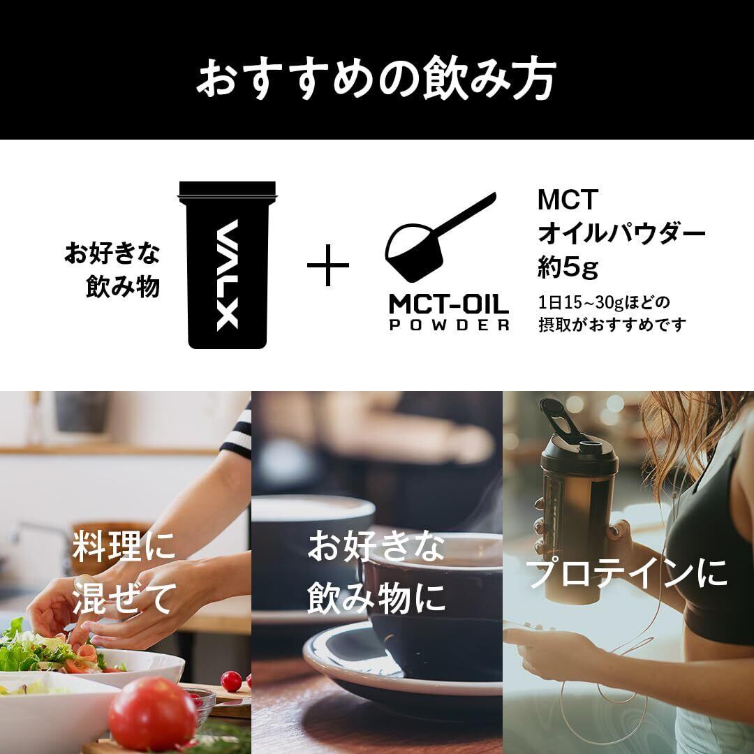 VALX MCTオイルパウダーは「糖質ゼロ」を実現!乳化剤・添加物一切不使用。 お好きな飲み物や料理に混ぜるだけで良質なエネルギー補給ができます。