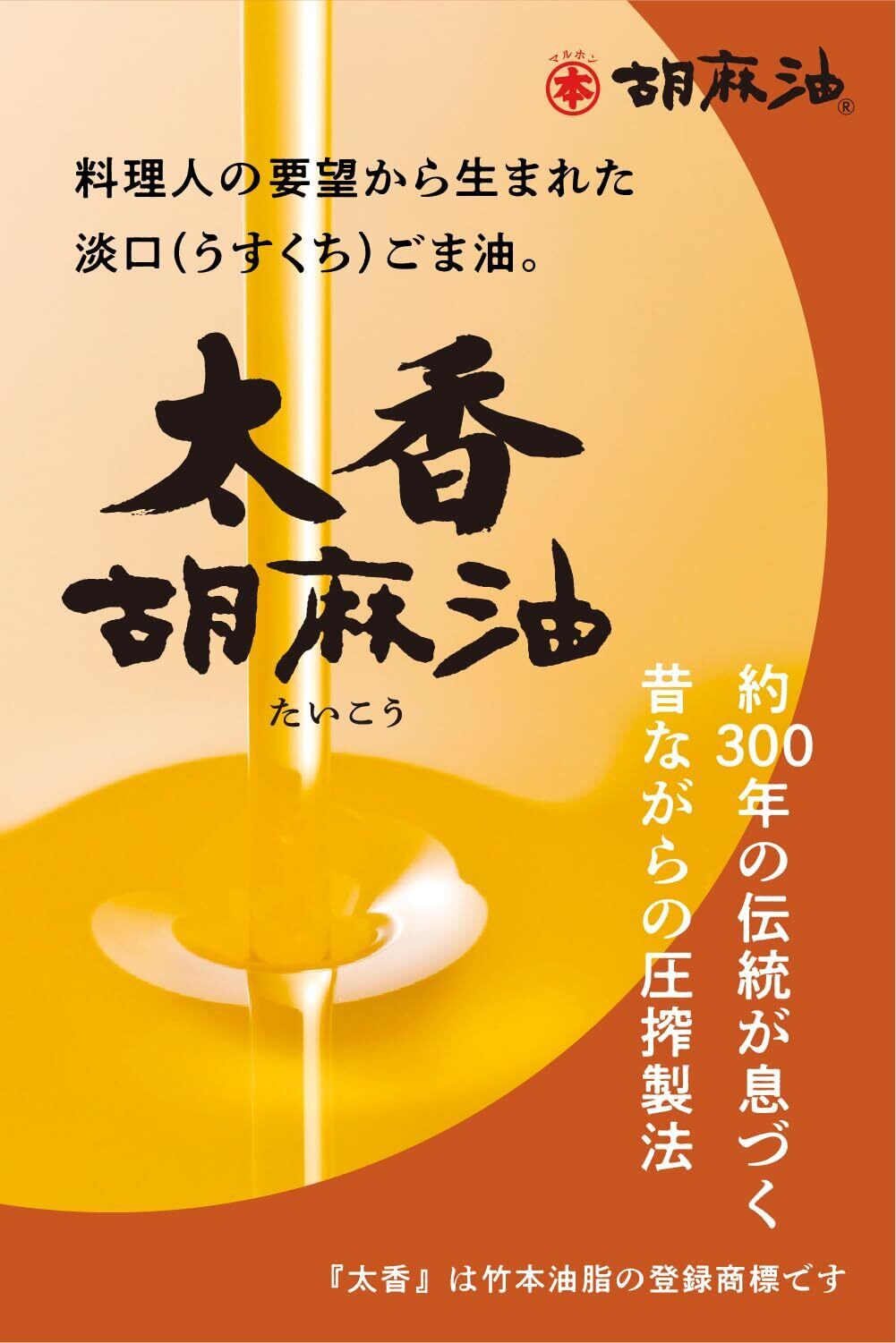 1725年創業の老舗ごま油メーカー竹本油脂。国内外のプロの料理人からも高い評価を得ています。料理人の要望から「おだやかな香り」のごま油を商品化し、その品質とおいしさに磨きをかけてきました。 [太香は竹本油脂の登録です。]