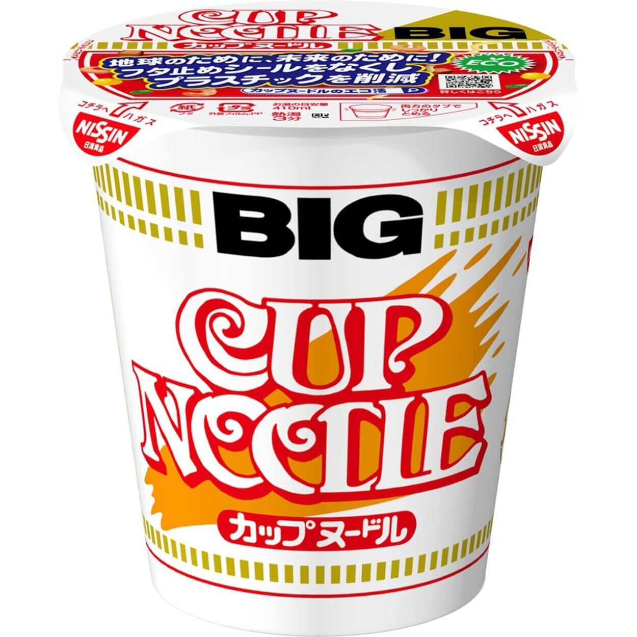 世界初のカップめんのビッグサイズ 謎肉がBIGになって増量リニューアル!カップヌードルのビッグサイズ。カップヌードル独特のつるみのある麺に、オリジナルスープ。具材は大玉謎肉、ミンチポーク、エビ、たまご、ネギ。