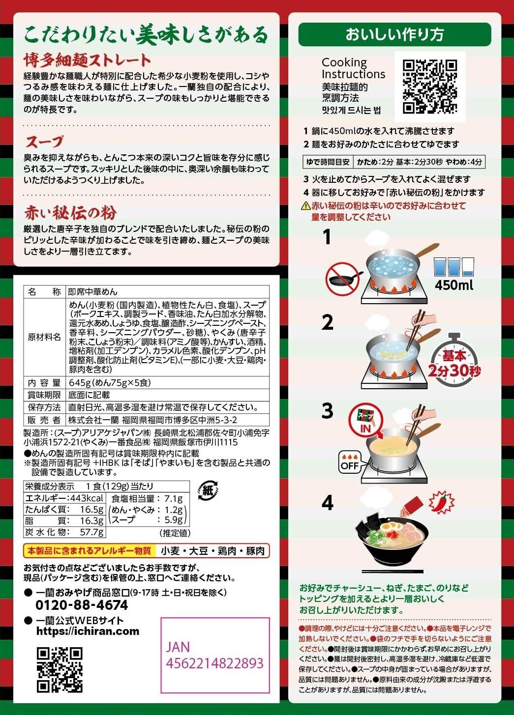 一蘭 ラーメン 博多細麺ストレート (5食) 645g