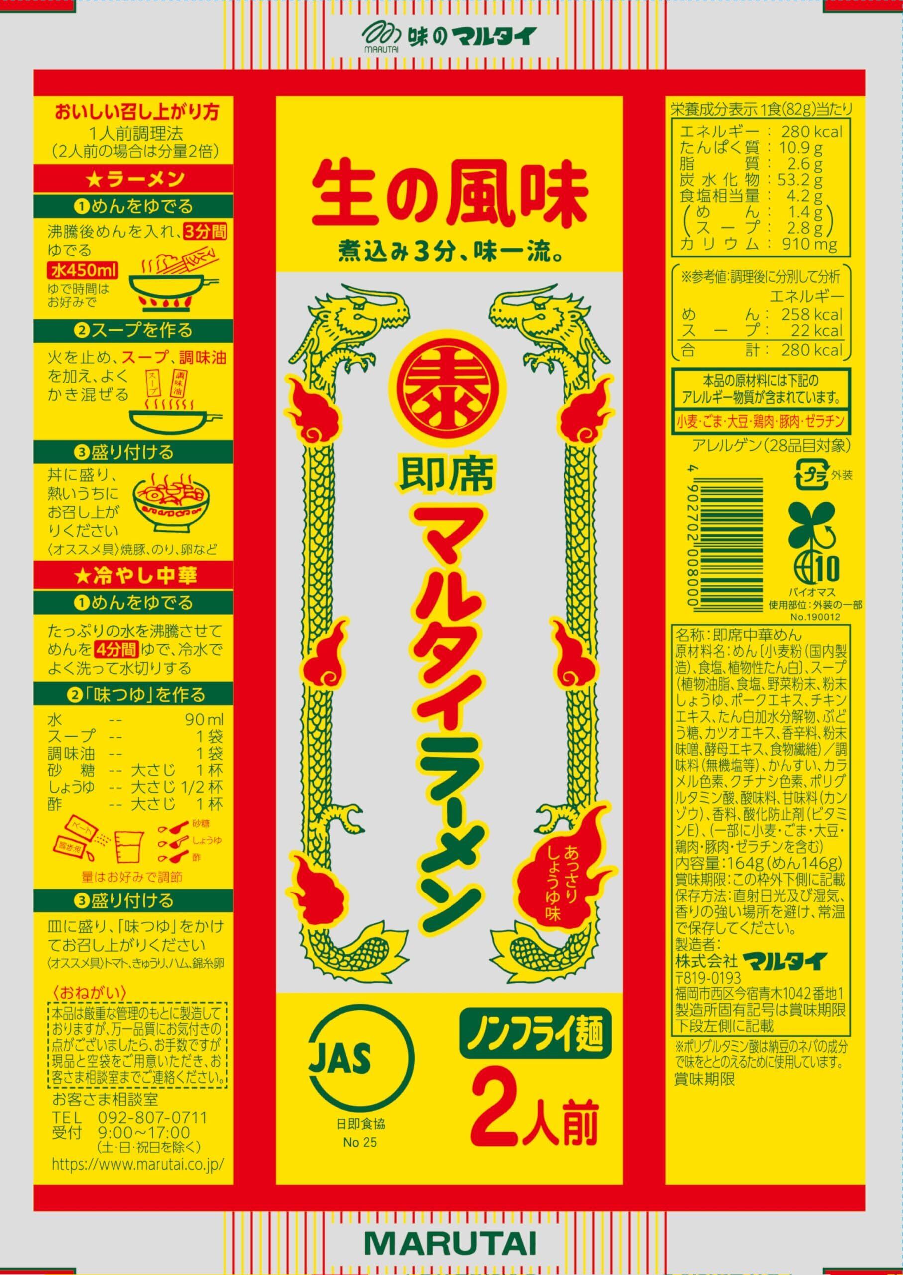 昭和34年発売の超ロングセラー商品で、即席棒状ラーメンのパイオニア的な商品です。めんはノンフライ・ノンスチーム製法で仕上げました、生麺に近い風味・食感のコシのあるストレートめんです。スープはチキンエキスとポークエキスをベースに、香味野菜等をブレンドしたあっさり醤油味スープです。昔ながらの素朴で風味豊かなあっさりした後味のラーメンです。平成26年10月より、美味しさそのままに20%塩分カットいたしました。