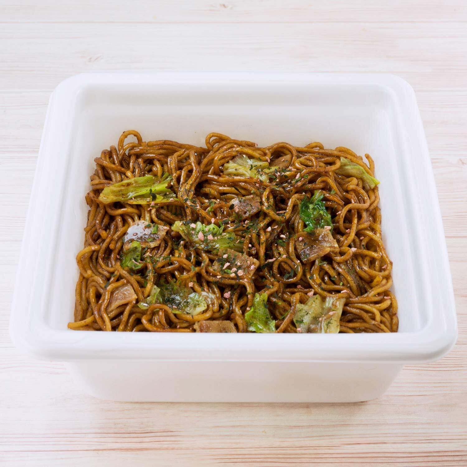 具には、大切りキャベツに炒めた豚肉を使用しコクをアップ。別添で青のりと紅生姜のふりかけ付です。