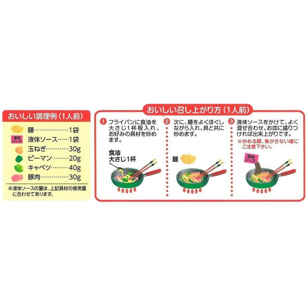 めん(小麦粉、植物油、小麦蛋白、食塩)、ウスターソース、砂糖、香辛料、食塩、調味料(アミノ酸等)、酸味料、カラメル色素、pH調整剤、クチナシ色素、増粘剤(加工澱粉、増粘多糖類)、(原材料の一部に小麦、オレンジ、大豆、りんごを含む)
