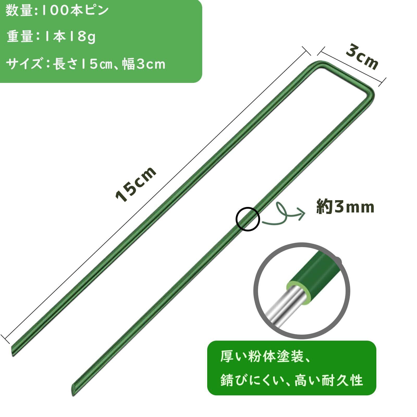 人工芝 ピン 100本セット Niesporek 防草シート 固定ピン u字ピン おさえピン 耐久U字型押さえピン マルチ15cmフック型農業用ネット(100本ピン)