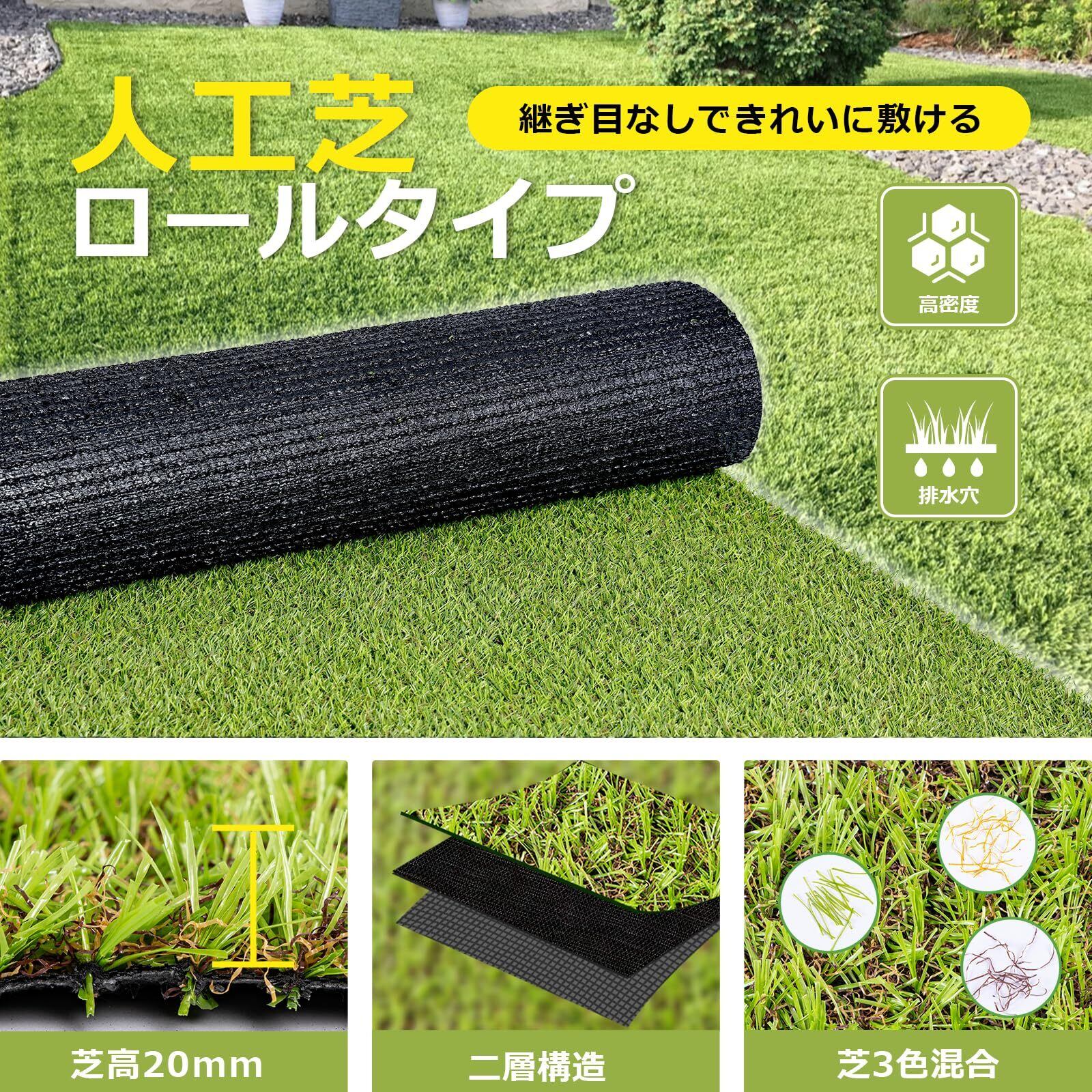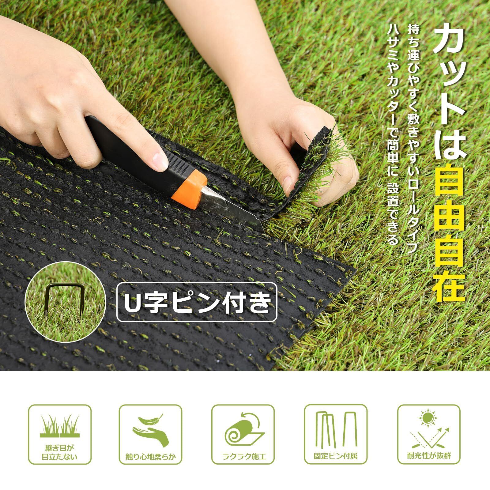 【2層構造・取り扱いが簡単】破れにくい不織布に比べ、破れにくいメッシュ生地を採用しました。抜群の耐久性、スポーツ等にも使用できます。芝丈は掃除しやすい20mm長さで、落ち葉やほかのゴミなどの掃除も簡単です。