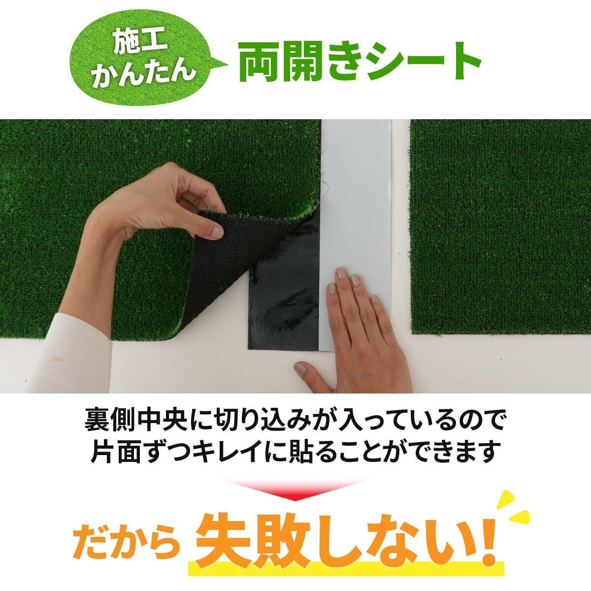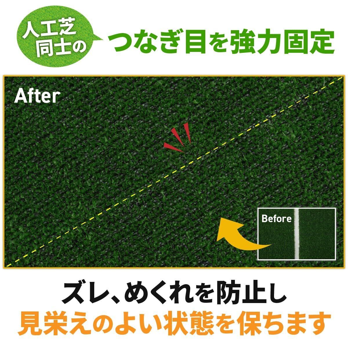 【 本商品を使用するメリット 】強力な粘着力で人工芝のつなぎ目の浮きを防止します。施工後は表面に突起物がでないため、つまづく危険性もありません。 また、人工芝同士に隙間が出来ずいつまでも美観が保たれます。