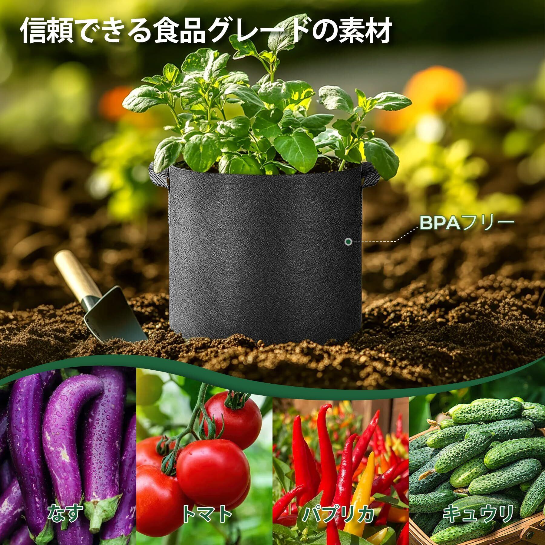 「果樹・野菜・花栽培に最適」底部は高品質のポリエステル糸で作られており、耐腐食性、高強度があるので、植物や土がたっぷり入っても大丈夫です。植木や果樹、ジャガイモ、トマト、唐辛子、野菜を栽培するにも最適です。