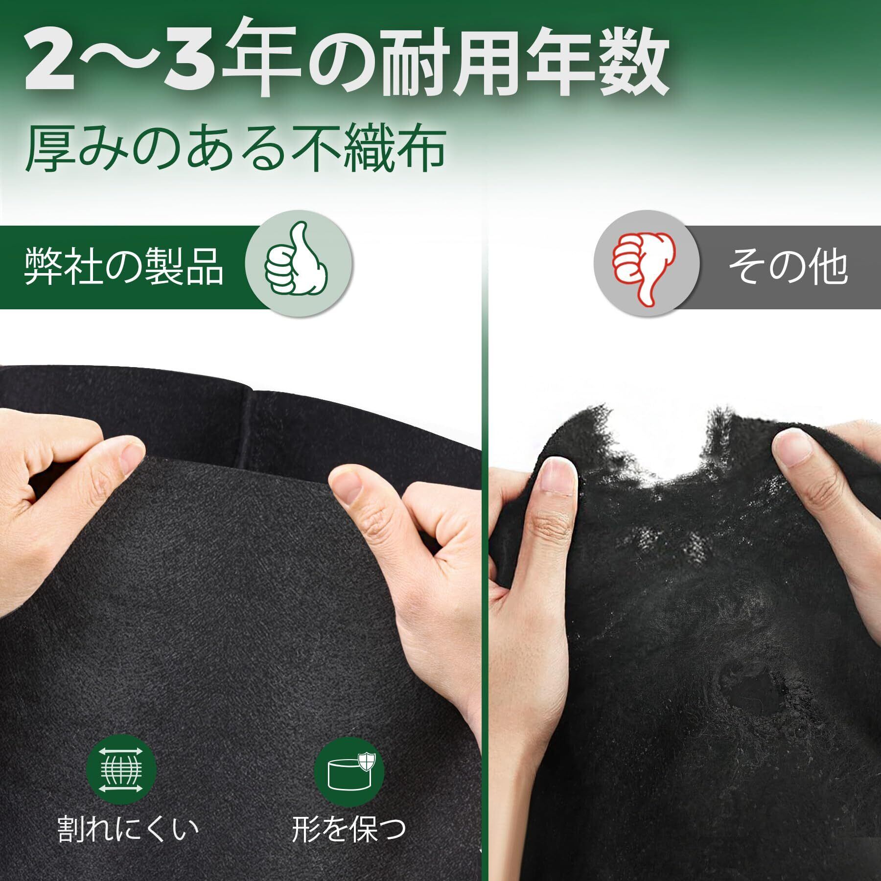 [通気性の生地]厚手の不織布で作られて、通気性、透水性に優れているので植物の発育に適しています。無公害、環境にやさしく、再利用可能の植え袋です。