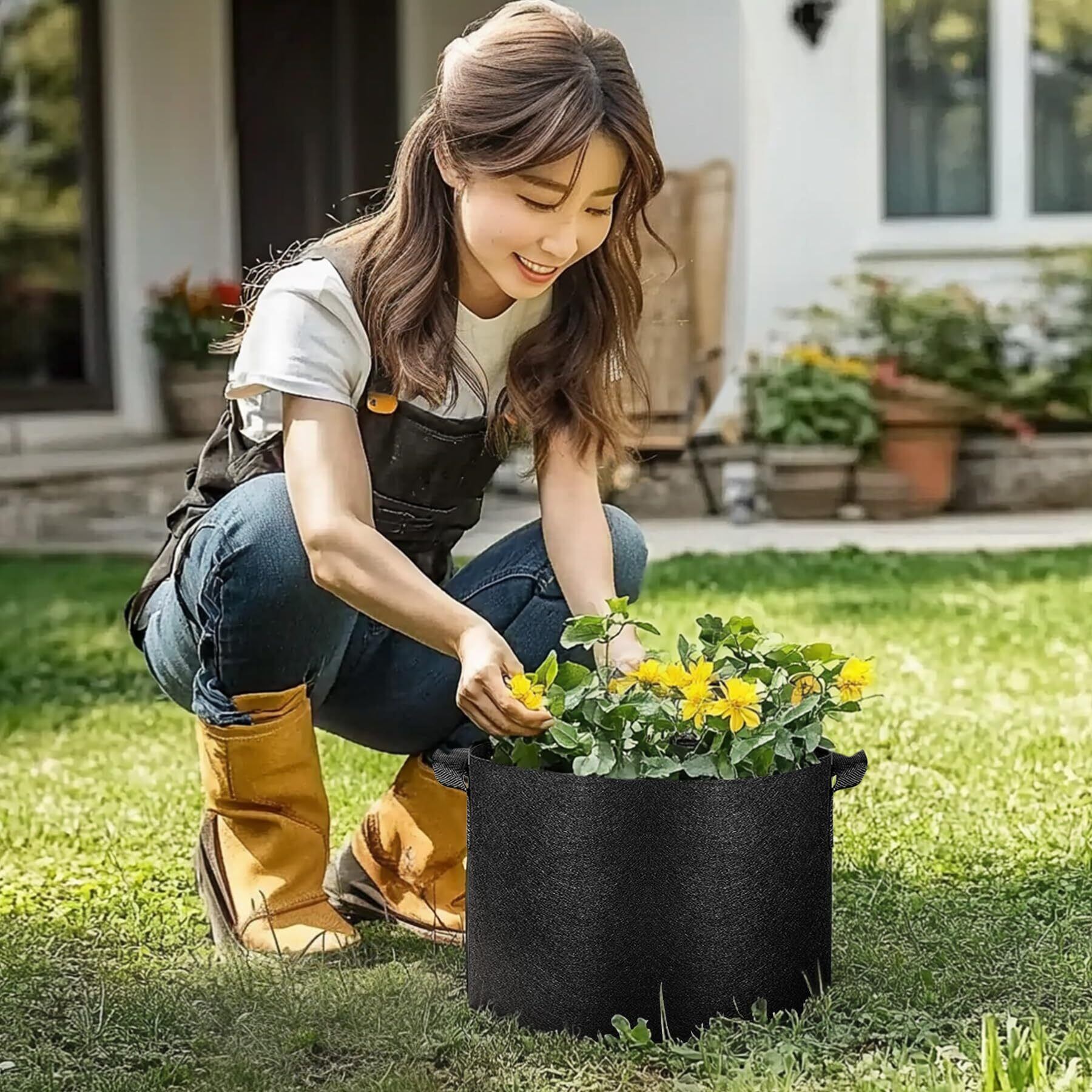 T4U 不織布プランター 布鉢 持ち手付き 5ガロン (19L) 30cm x 25 cm 5個セット 不織布ポット フェルト 栽培袋 厚手 植え袋 植物育成 花栽培 野菜栽培 園芸 根域制限 ブラック | 毎日発送✿はなまる