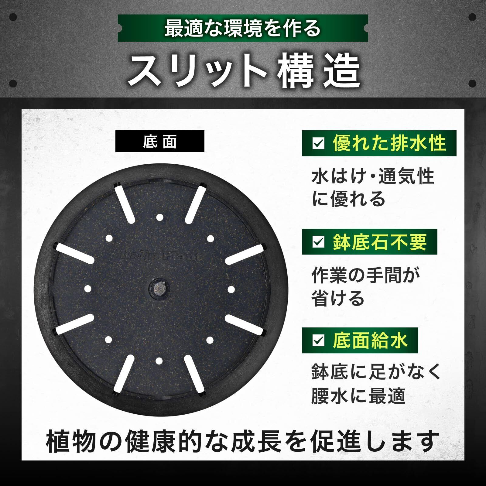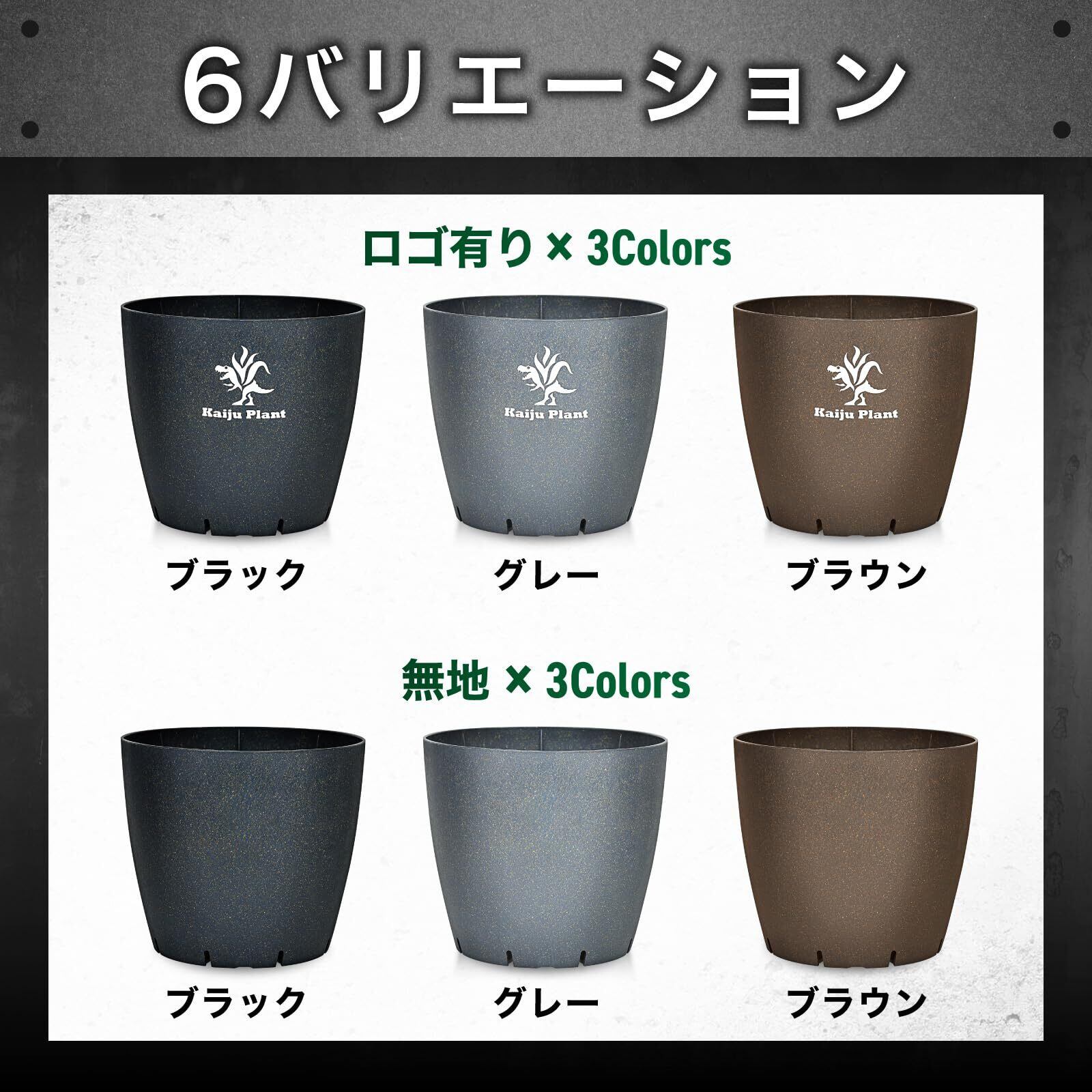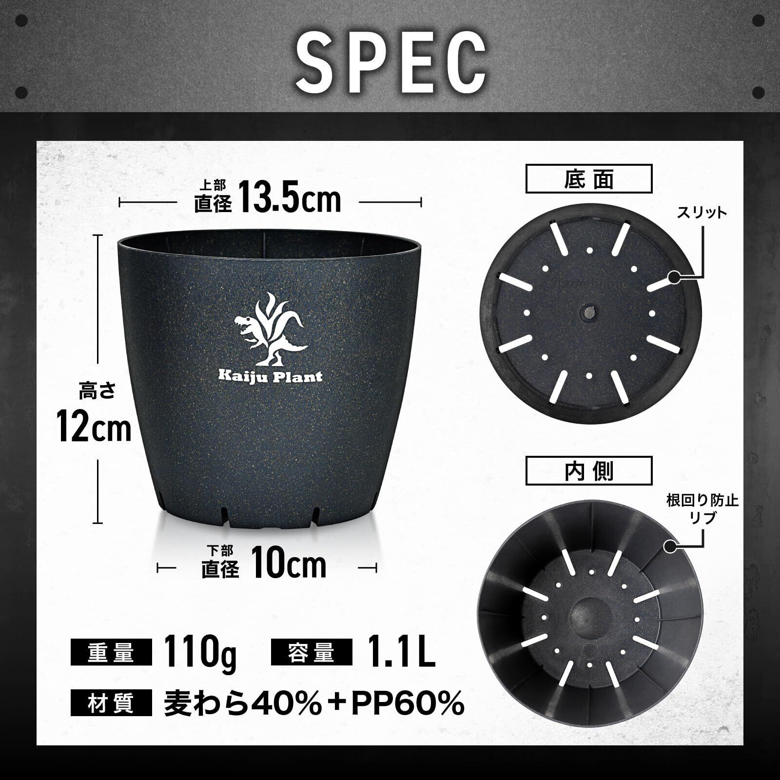 Kaiju Plant 怪獣ポットEco4.5 スリット鉢 4.5号 麦わら再生プラ鉢 植木鉢 アガベ 塊根 サボテン (ブラック/ロゴ)