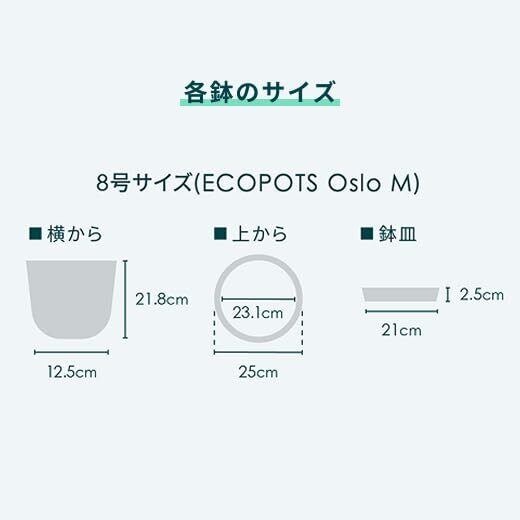 ️【詳細】号数:8号| サイズ 外径:25cm 内径:23.1cm 高さ:21.8cm | 重さ:1200g | 容量:7.70L | カバー利用:あり.| 底穴:あり|鉢皿サイズ:外径22cm、高さ2.5cm | 同梱物:植木鉢、鉢皿、鉢底網|