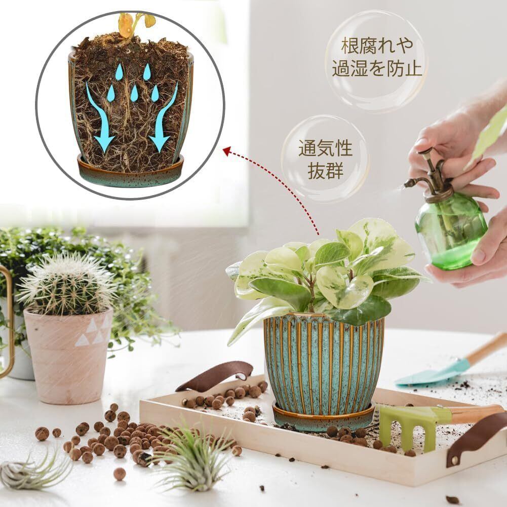 【通気性に優れたデザイン】優れた陶器素材を使用しており、丈夫で長持ちするだけでなく、通気性にも優れています。鉢の底には排水穴があり、滞留した水を排出し、植物の根腐れを防ぐために空気の循環を高めます。また、鉢皿と防水プラグが付属しています。