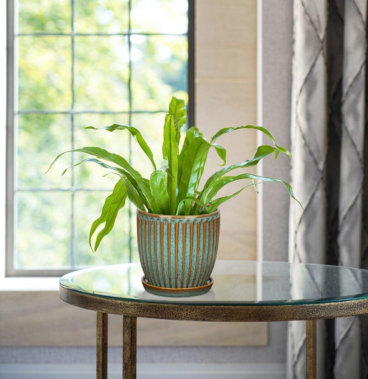 【洗練された表面仕上げ】こちらの植木鉢は、竹をイメージした縦のリブラインが上品なデザインです。窯変釉による独特な斑模様と質感が特徴で、縦のラインには茶色のアクセントが施され、高級感と温かみを演出しています。尚、窯変釉は窯の中で自然に生まれる表情のため、一品ごとに模様や色が唯一無二の仕上がりとなります。画像はあくまでイメージです。