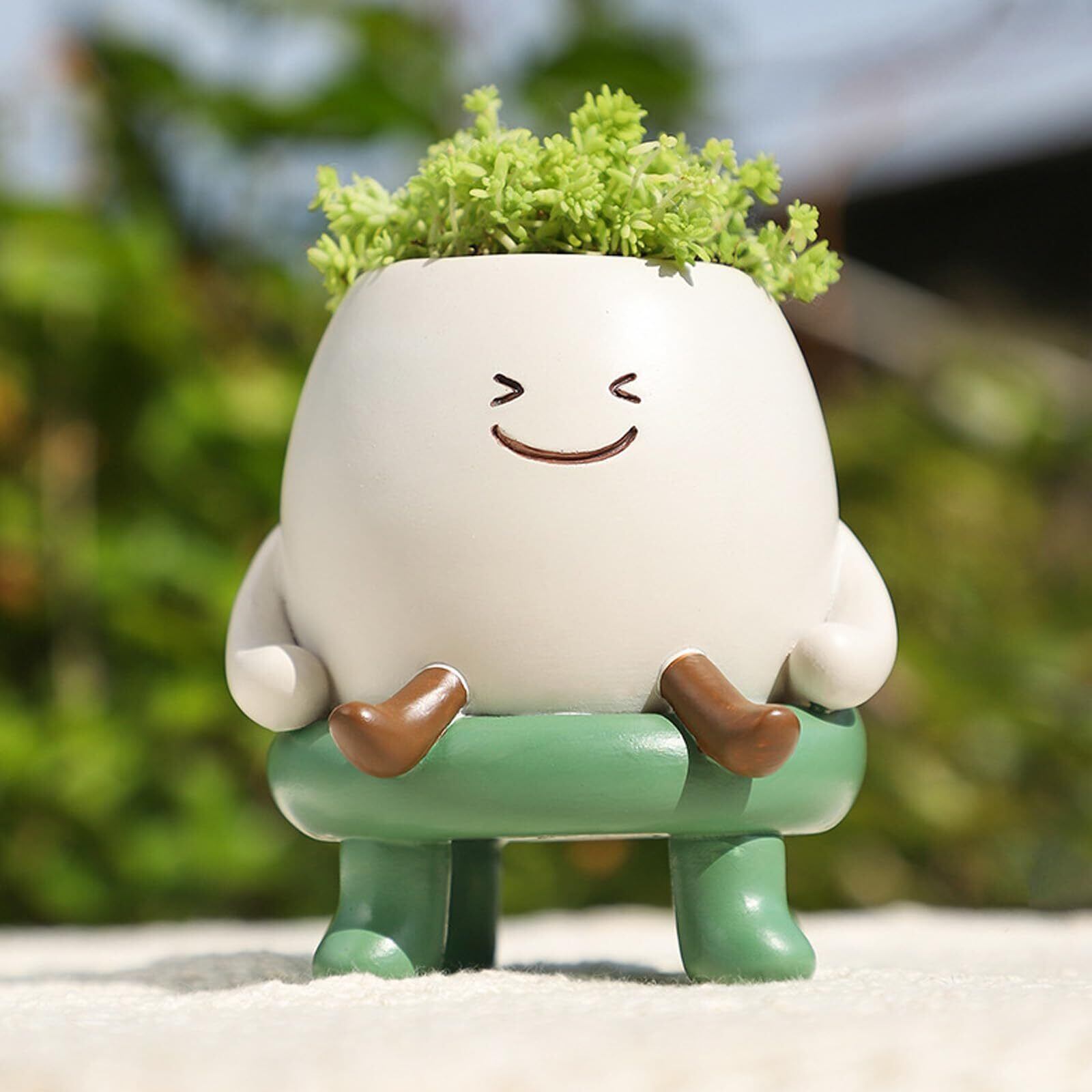 多肉植物 鉢 サボテン 鉢 可愛い植木鉢 おしゃれ かわいい笑顔 脚付きプランター ミニ盆栽 樹脂製観葉植物 鉢植え癒し屋内屋外植木鉢 部屋飾りガーデニング雑貨庭 置き物 母の日クリスマス プレゼント(デザインD-嬉しくなる)
