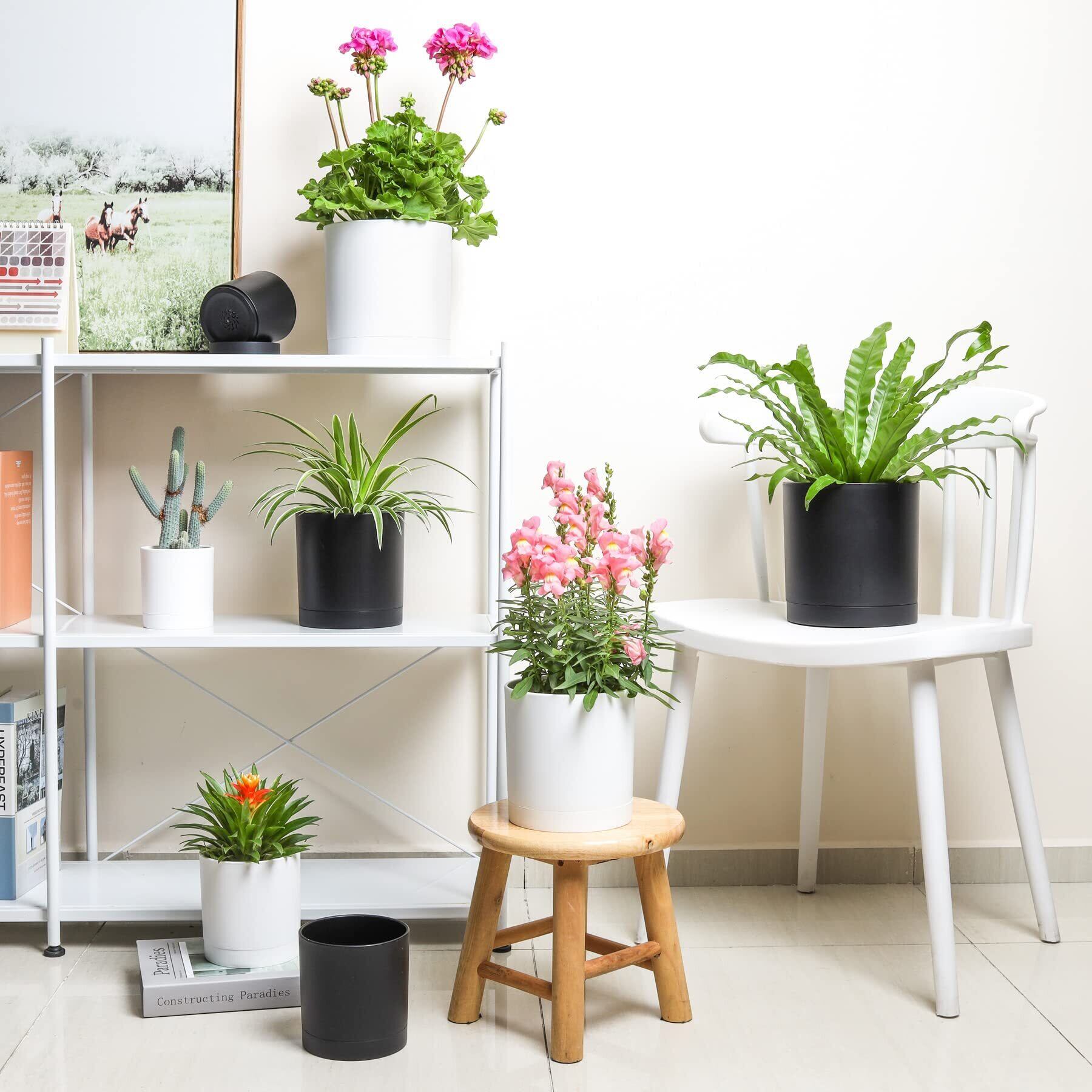 「厚みのあるプレミアム素材」この植木鉢は、上質なプラスチックで作られ、植物への安全性を確保し、心配せずに植物を栽培できます。硬さを改善できるために、鉢は約3.5mm厚さのプラスチックで作られ、破損や落下に耐えることができます。