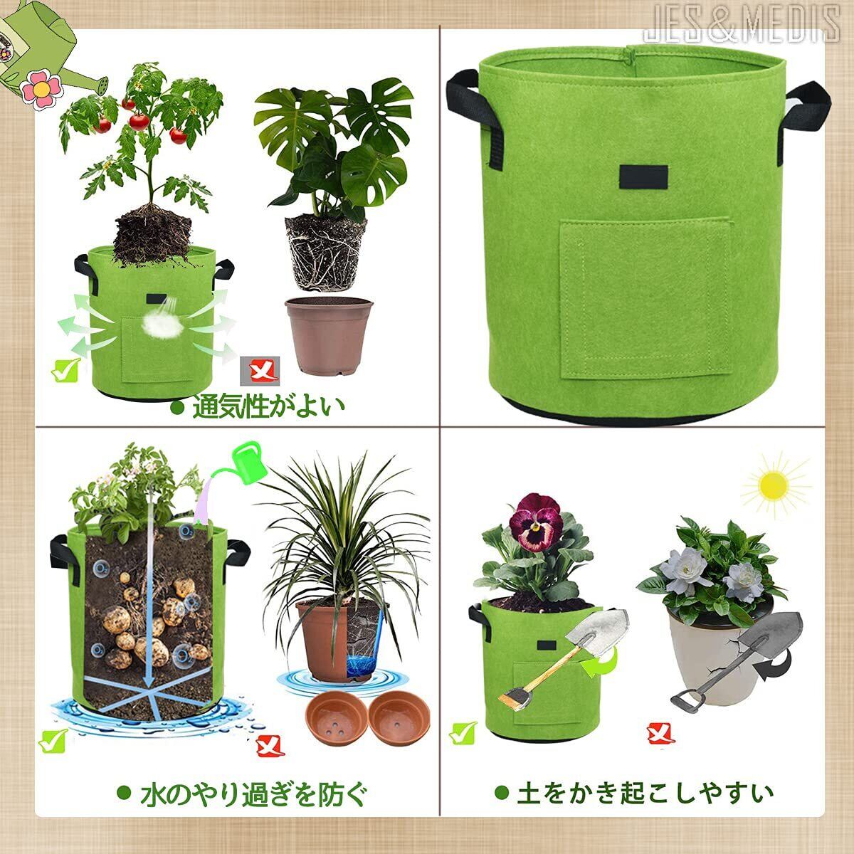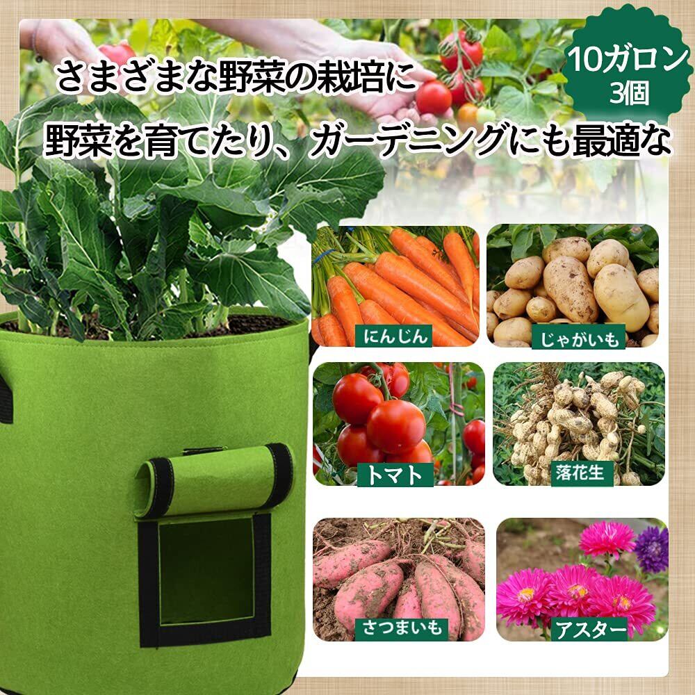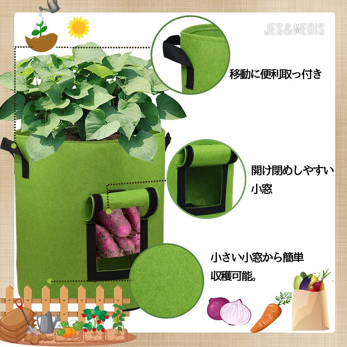 3個セット 10ガロン プランター 布鉢 栽培袋 窓がある 緑 フェルト 不織布ポット 植え袋 ガーデン 通気性 diy 園芸 植物育成 じゃがいも 野菜 大容量 JES&MEDIS (緑, 10ガロン_3個)