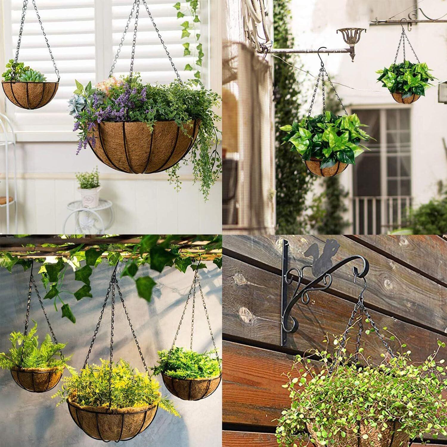 植木鉢、バスケット、鳥の餌箱、ランタン、風鈴などを吊るすのに使用できます。花、イチゴのような果物、ツタのような絡まった植物などを詰めた重いバスケットを掛けることができます。 花や植物が育つにつれて、これらのチェーンは簡単に調整でき、成長し続ける余地があることを確認できます。 また、室内での使用に最適で、ご自宅に魅力的な外観を与えたり、フルーツバスケットを掛けてキッチンに飾ったりするのにも最適です。
