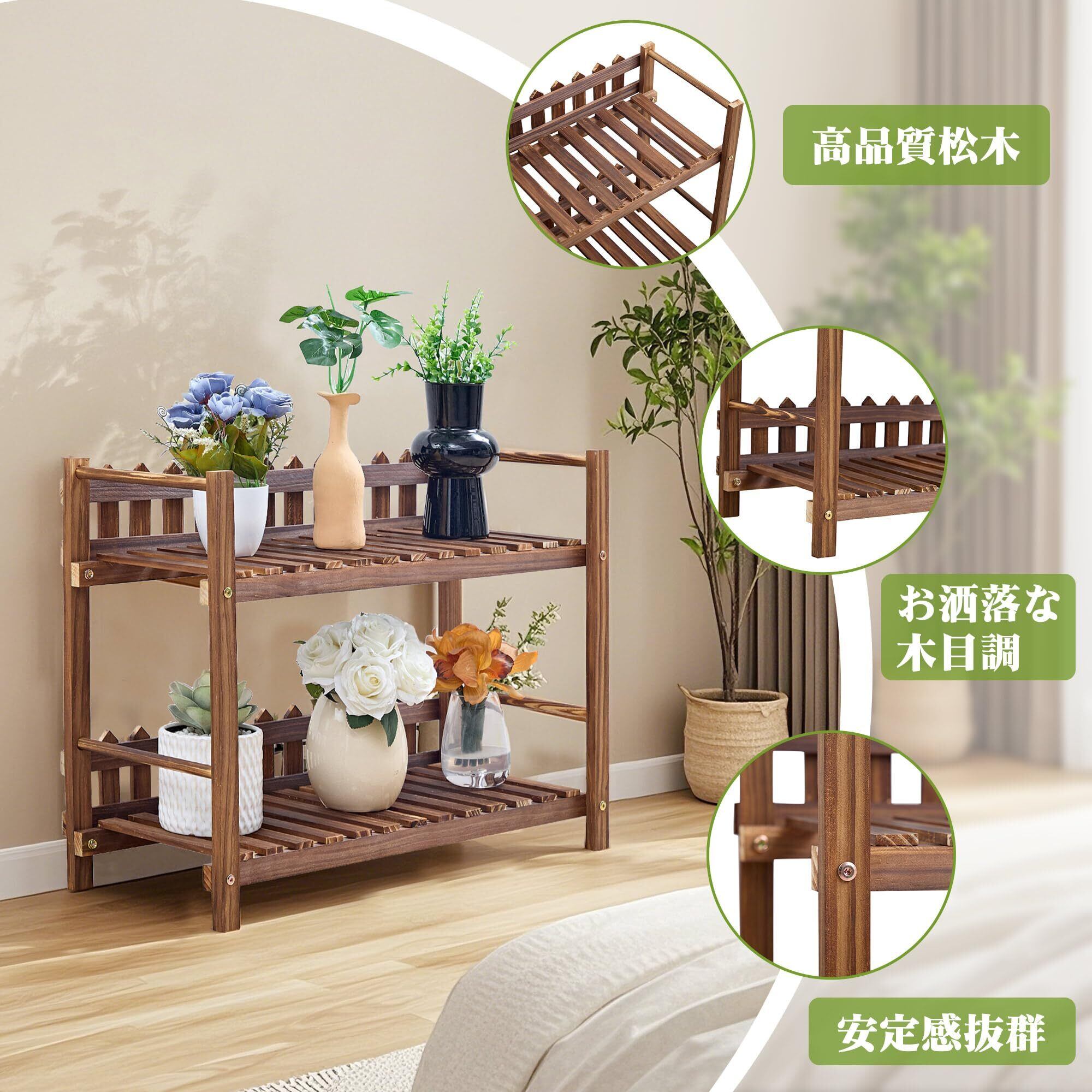 VECELO フラワースタンド 鉢スタンド プランタースタンド 幅60cm 木製 鉢置き台 おしゃれ 植木鉢台 園芸ラック 花棚 植物スタンド 観葉植物 多肉植物 室内 屋外 丈夫 耐荷重100kg 排水性 通気 根腐れ防止 ブラウン | 毎日発送✿はなまる