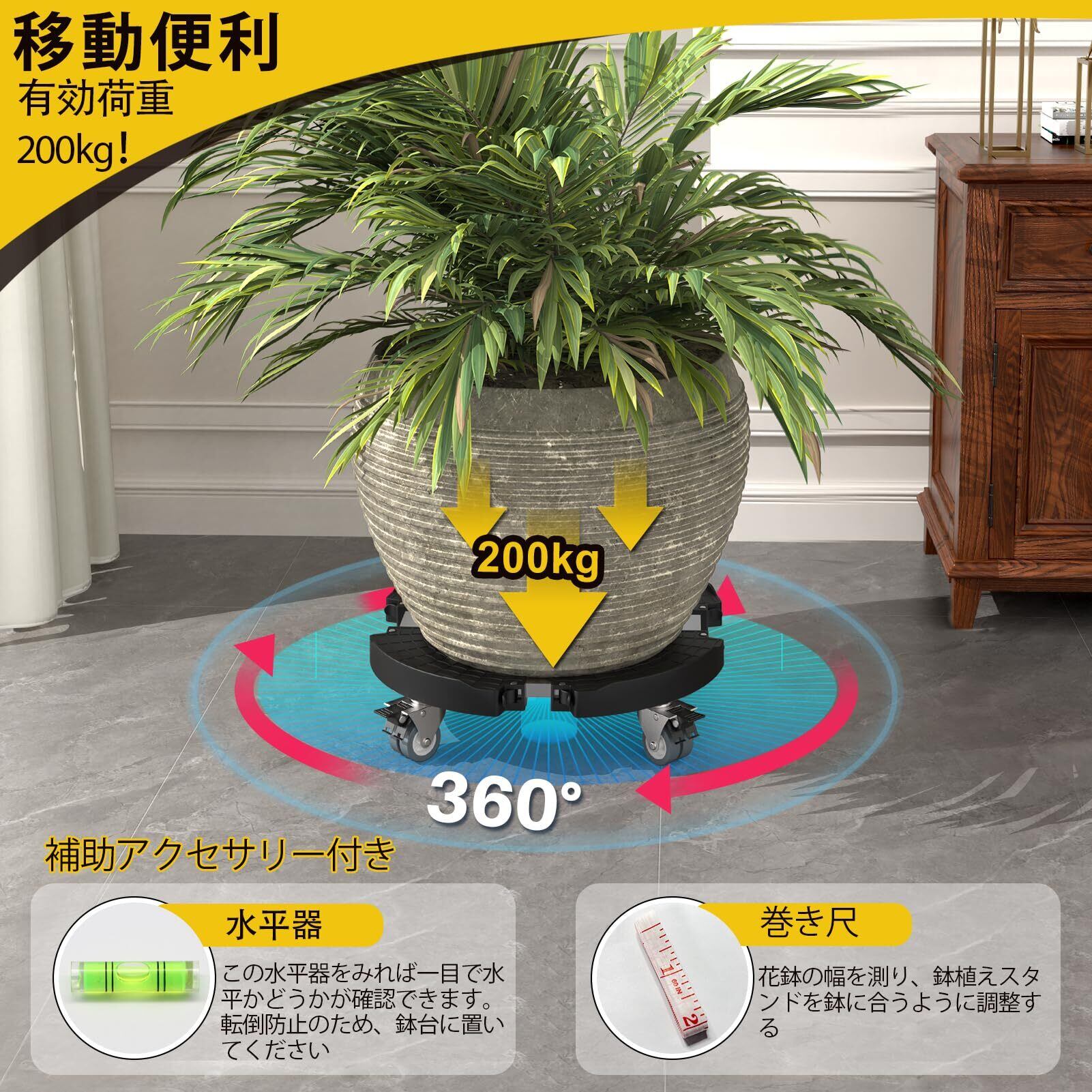 【床板を保護】 屋内、屋外、庭、リビングルーム、ダイニングルームなどで、重い花鉢、陶器の花瓶、鉢植えの木、ごみ箱、または他の重い品物を置きます。