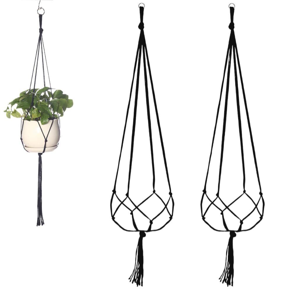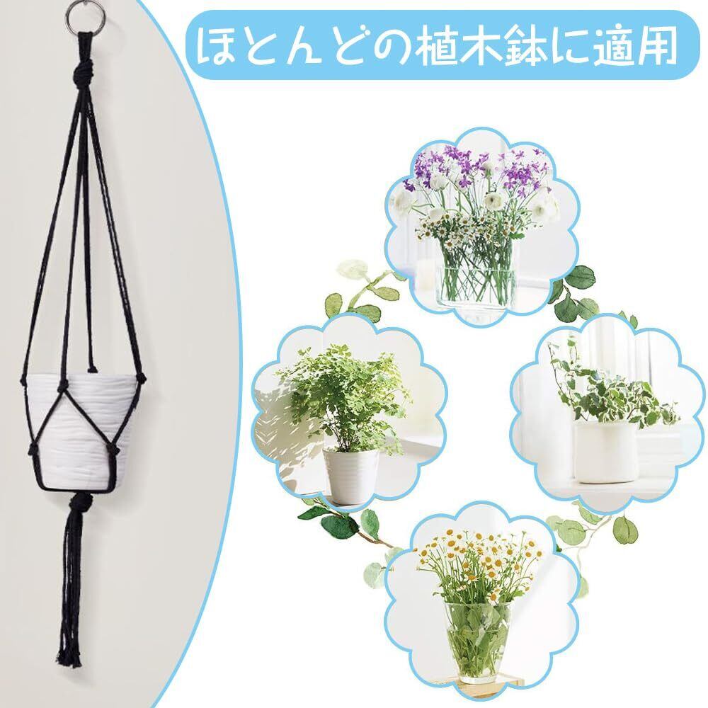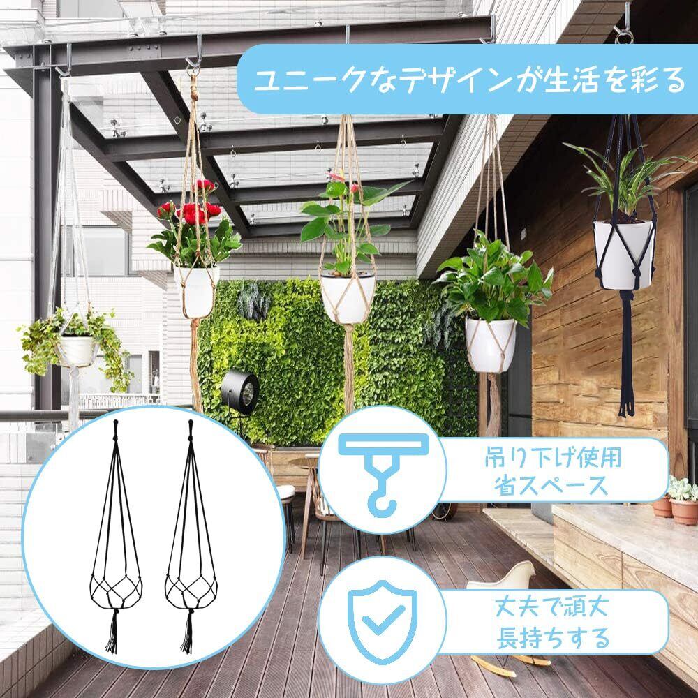 麻縄 植物ハンガー プラントハンガー 吊り下げ 植木鉢 手作りマクラメ植物ハンガ ハンギングプランター 織り鉢植え 鉢植え用 屋外屋内植物に適用 2本セット (ブラック)