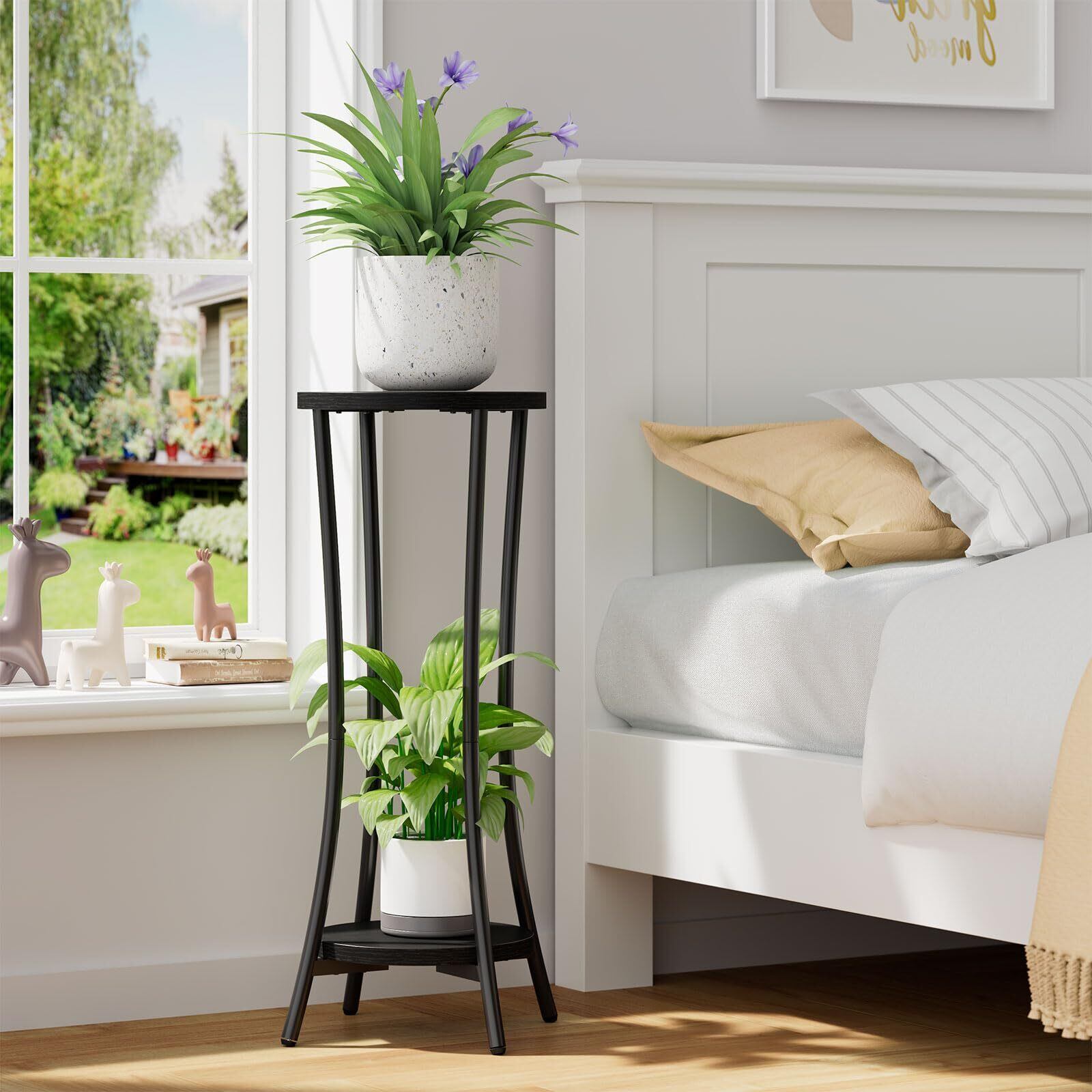 IBUYKE フラワースタンド プランタースタンド 鉢スタンド 2段 植物棚 植木鉢台 花台 植木鉢置き 室内 バルコニー ガーデンラック 玄関置き 組み立てが簡単 ブラック JPTMJ074B | 毎日発送✿はなまる