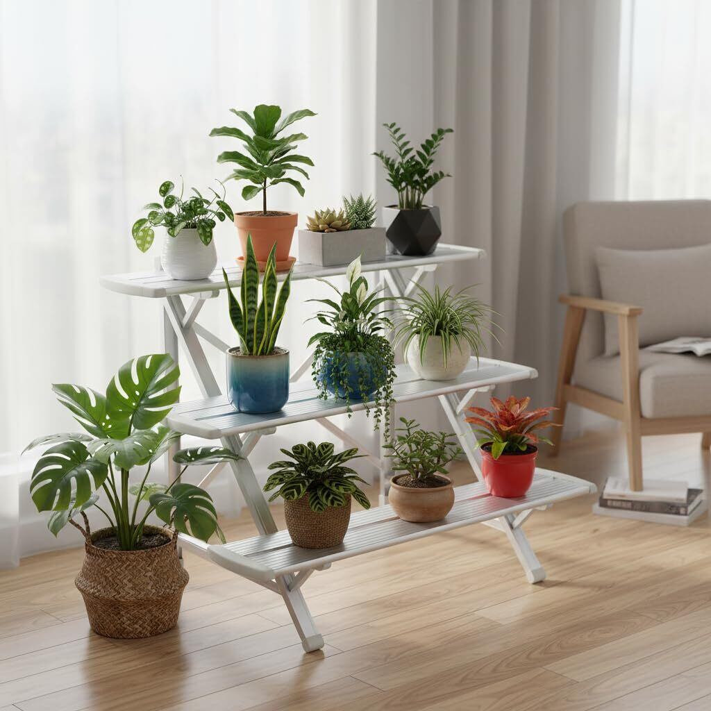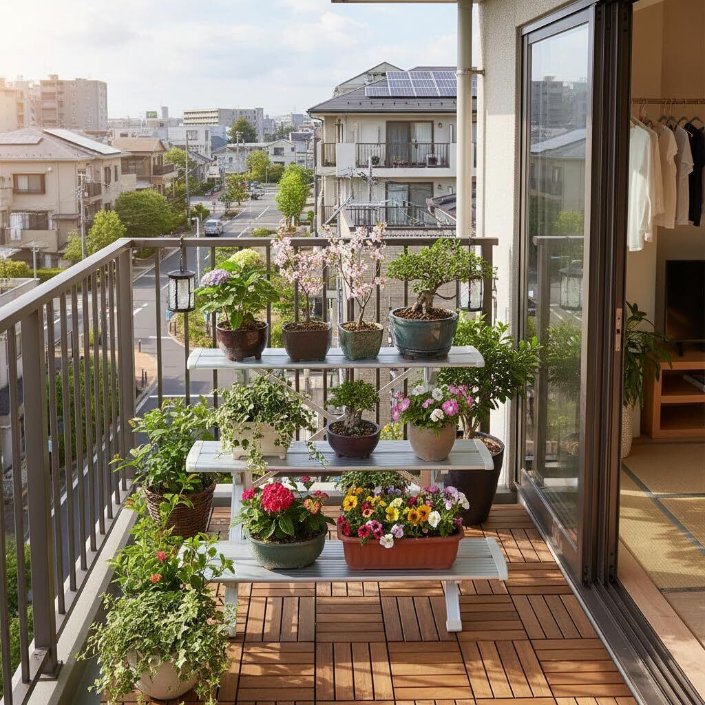 ベランダやガーデンをおしゃれに活⽤!軽量アルミでサビに強い3段スタンド!
