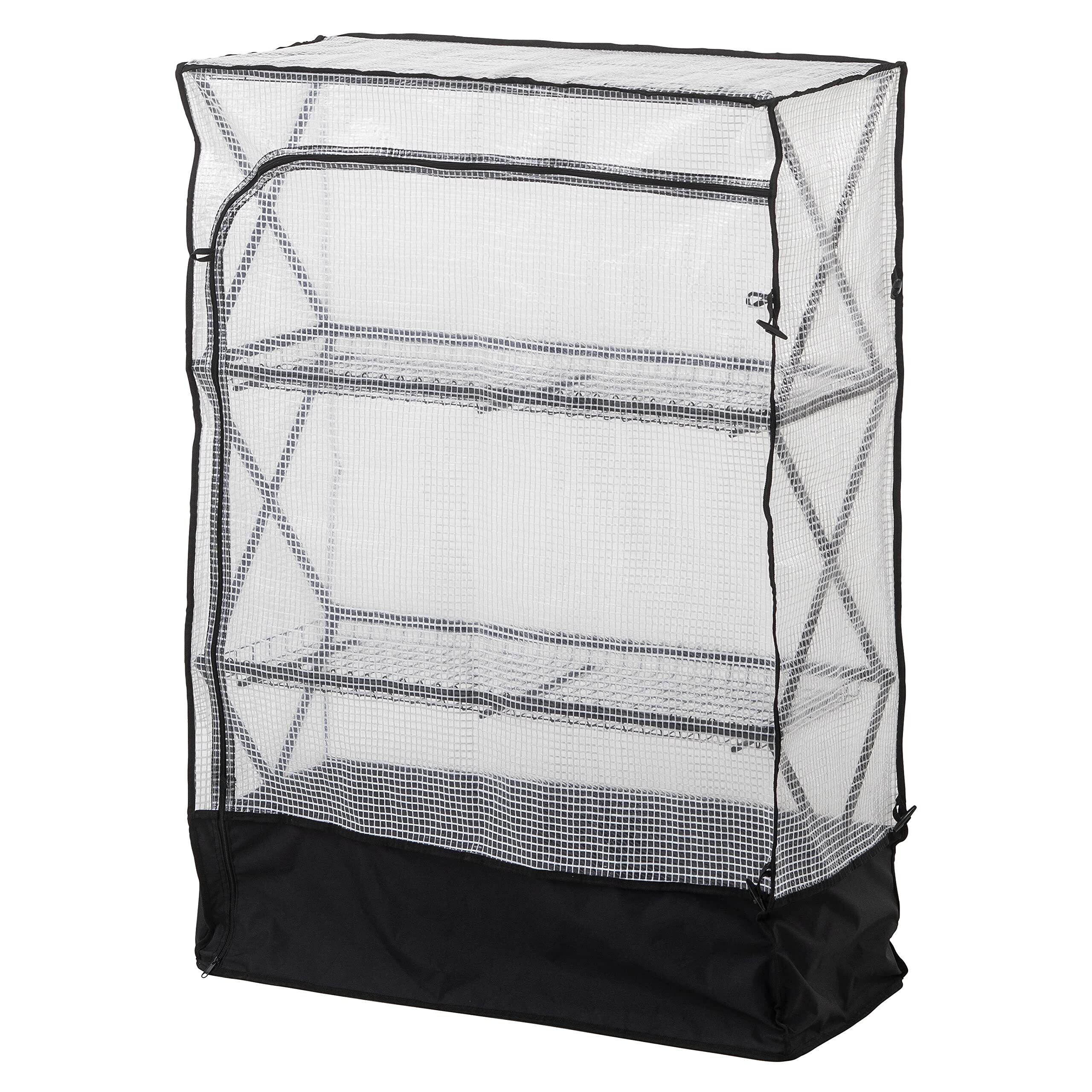 【カバー付属の簡易温室】 ポリエチレン・ポリエステル製のカバーが付属。有効棚板3枚を使い、大切な植物を寒さや霜、ホコリから守る簡易的な温室として活用できます。(カバー無しでは4段利用可能)
