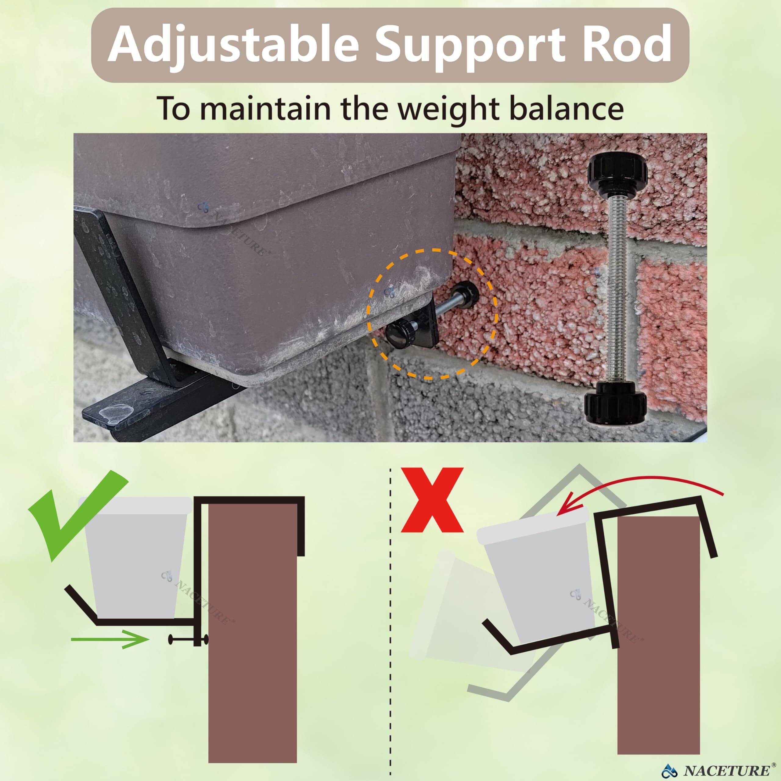 ️ 幅調整可能なデザイン-上部幅は約3〜19.5cm(1.2~7.7インチ)、底面幅は約15~26cm(5.9~10.2インチ)まで自由に調整可能。様々な形やサイズのプランター(長方形や四角形など)にフィットし、ブロック塀 固定金具やベランダ手すり固定金具としても活用できます。