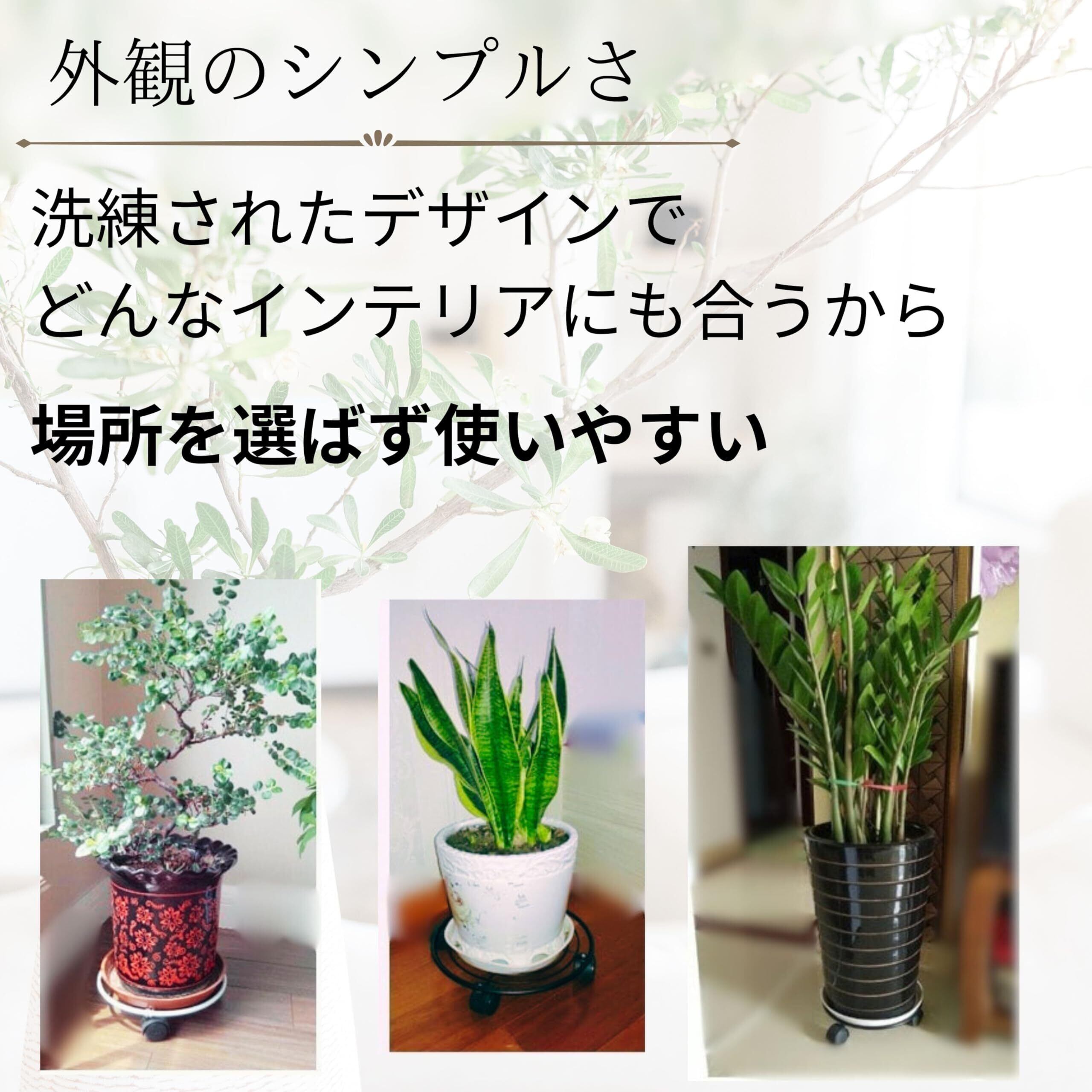 【使用感・体験】 重い鉢植えもスムーズに移動でき、掃除や植物の手入れが楽になります。植物の移動や管理に要する手間を削減できます。
