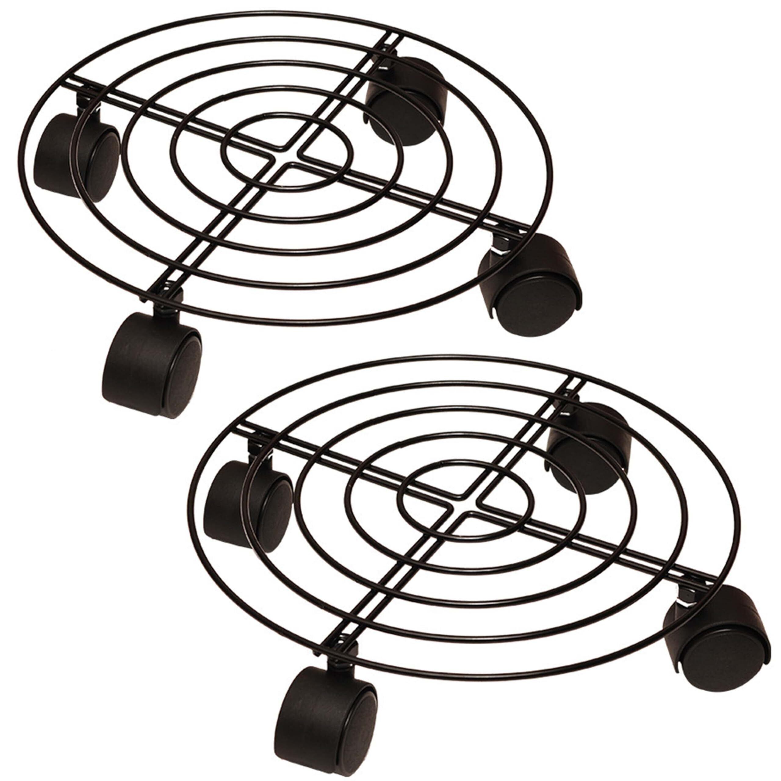 TikTrunk フラワースタンド キャスター付き 鉢置き台 移動 植木鉢 観葉植物 屋内 室内 おしゃれ 金属製 ブラック 27cm (2個セット)