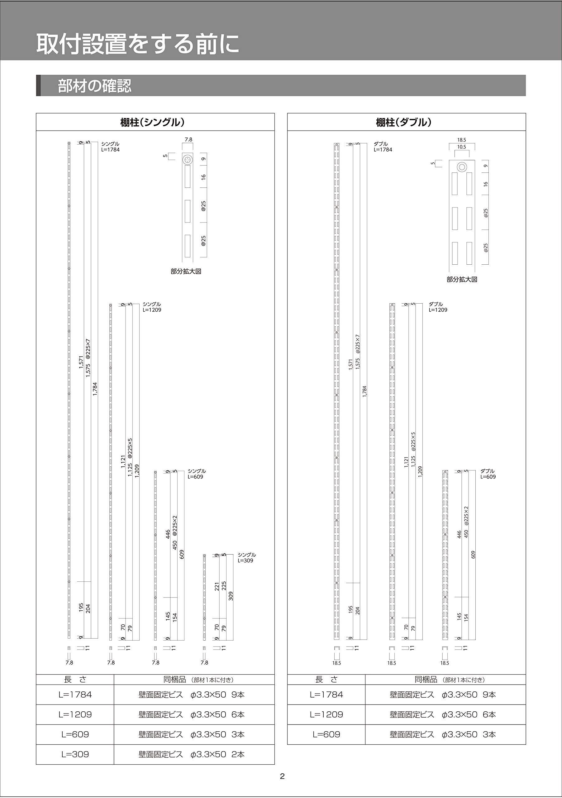 ウッドワン カナモノ 棚柱 ホワイト シングル2個セット MKTTS12-2-W