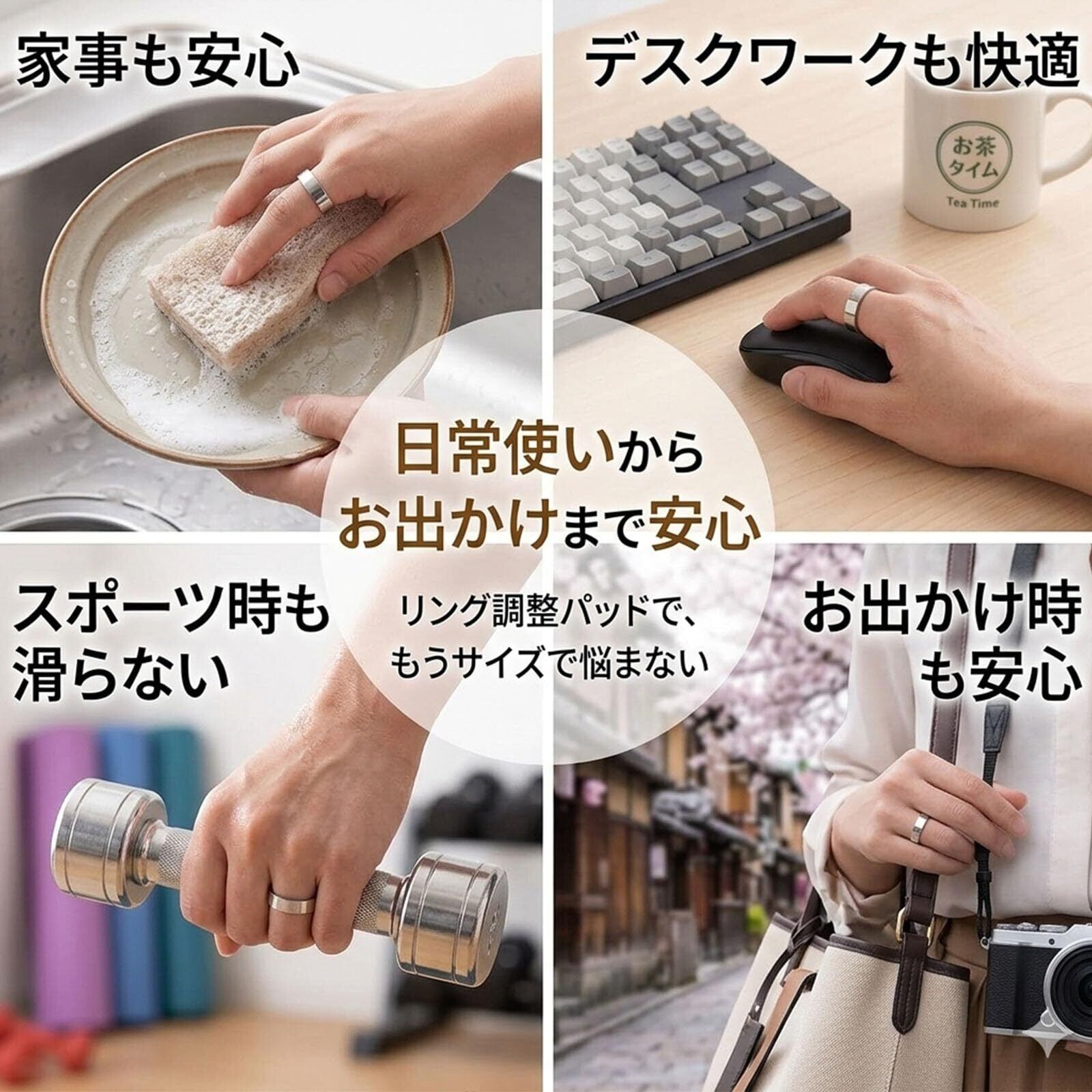 目立たない:粘着シート式ので、リングの内側に隠れており、外側からは見えません 。