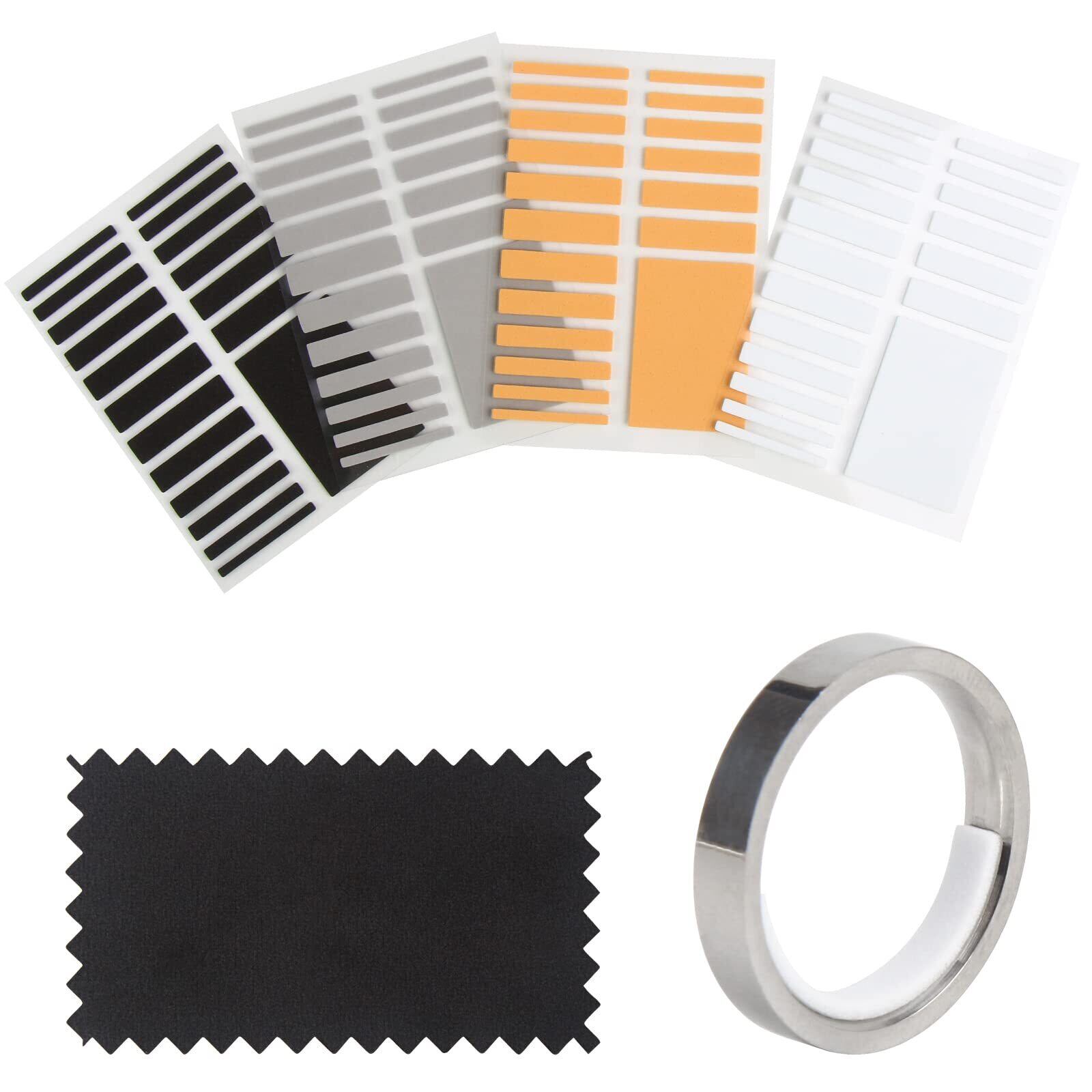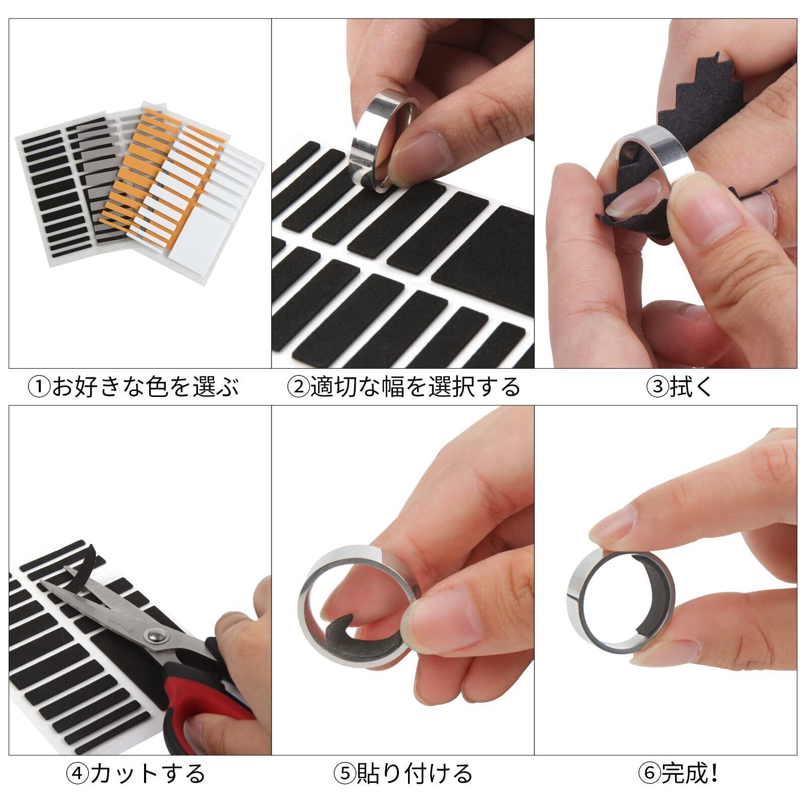 サイズ:厚さ:1.5MM 幅:3MM/4MM/5MM/6MM/7MM/8MM+自由にDIYカットできるDIY ZONE(️リング幅3mm以上の指輪にご使用できます。3mm以下の指輪に使用すると、粘着シートの粘着面が狭くなり、指輪にしっかりと接着できなくなる場合があります。)
