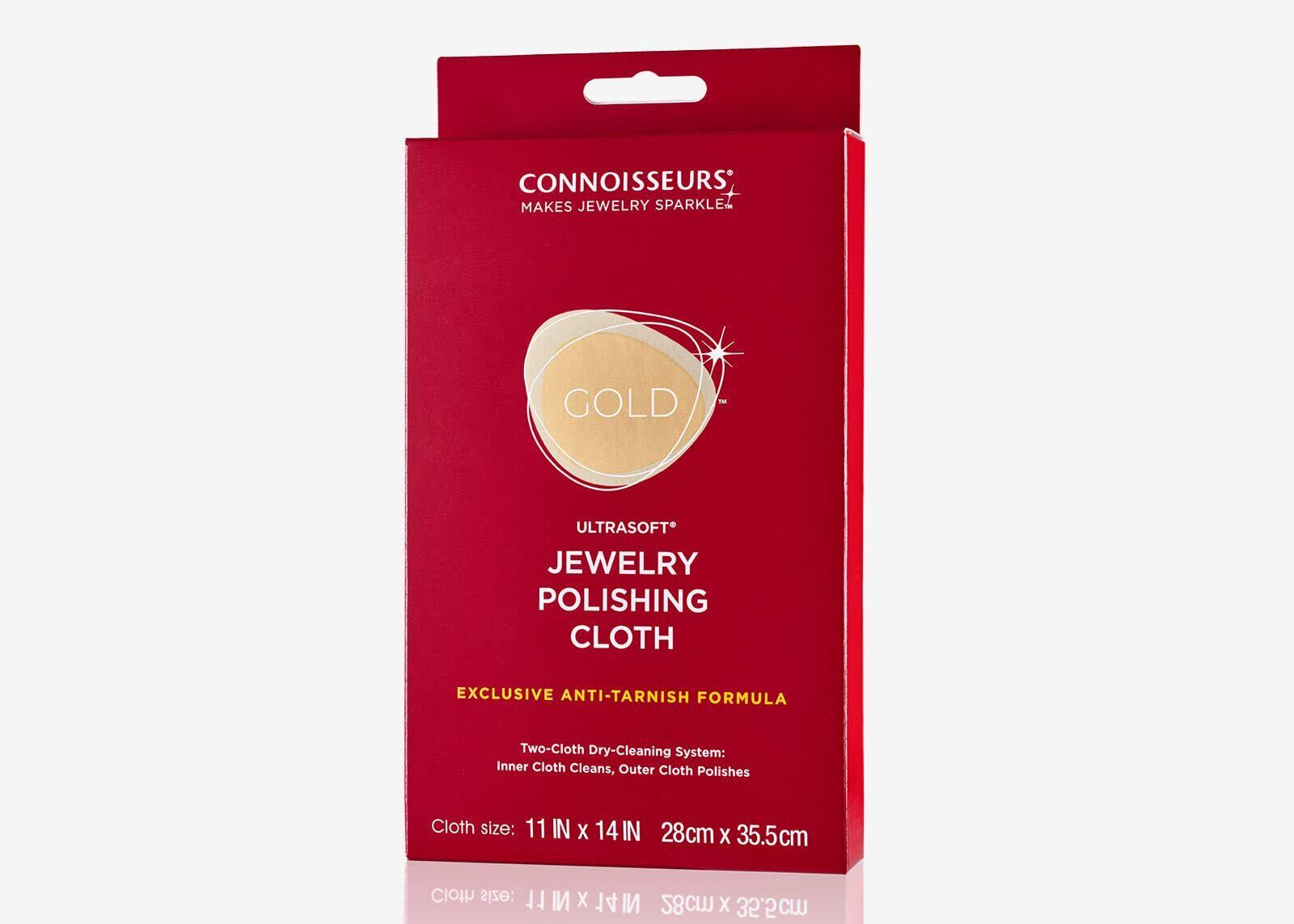 Connoisseursのゴールドポリッシュクロスは、便利な2枚の布クリーニングシステムを使用しています。明るい色のウルトラソフトインナークロスは、当社独自の貴金属洗浄剤配合と、長持ちする変色防止バリアの両方を適用しています。 濃い色のウルトラソフトアウタークロスは、優しく磨き、磨き上げることで比類のない高い光沢を提供します。 時計にも最適です。