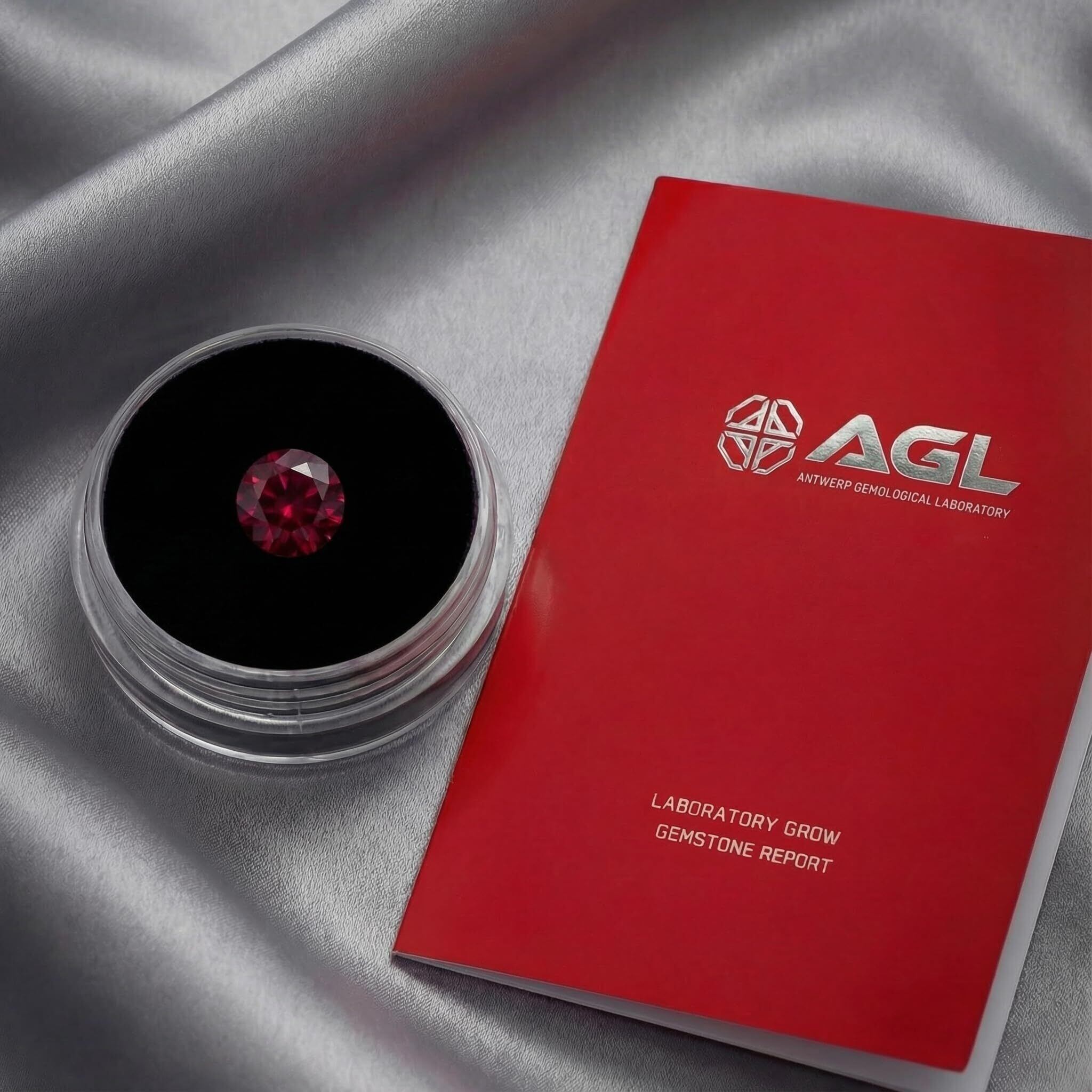 人工ルビー(ラボ育成)ルースストーン 0.5-2.0ct ラウンドブリリアントカット 深紅/ルビーレッド Dグレード VVS1クラリティ AGL証明書付き ジュエリーDIY制作用 ピアス イヤリング 指輪 ネックレス | 毎日発送✿はなまる