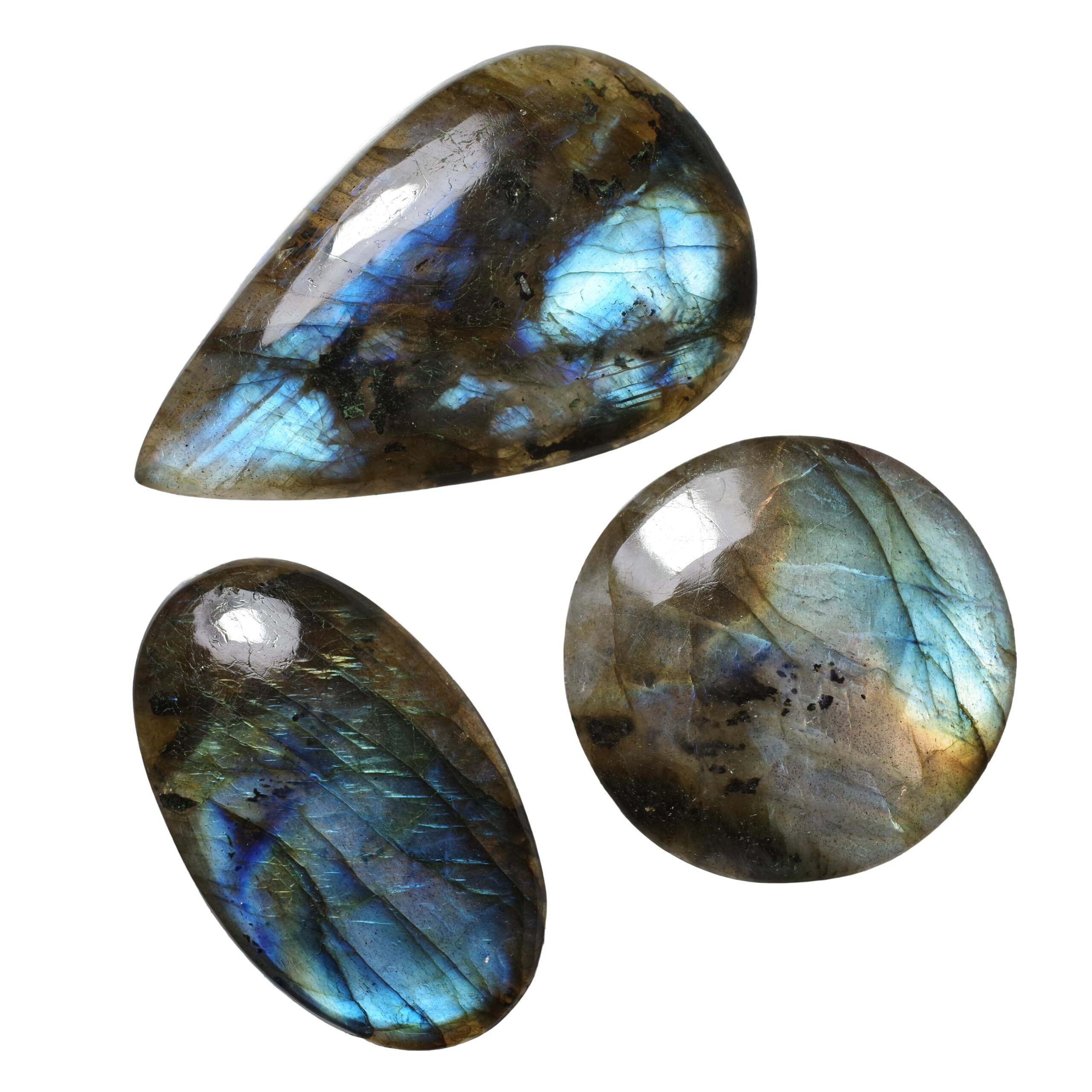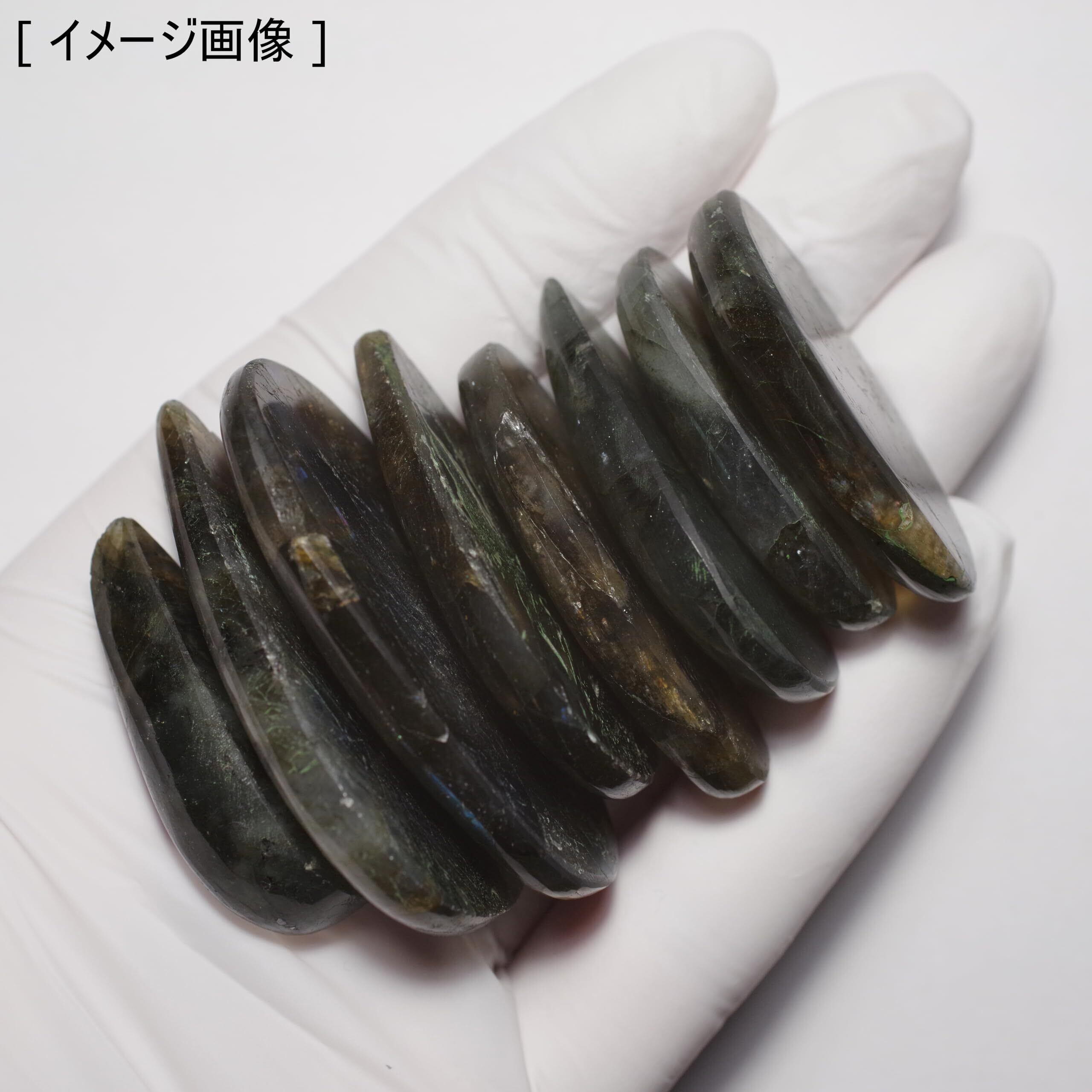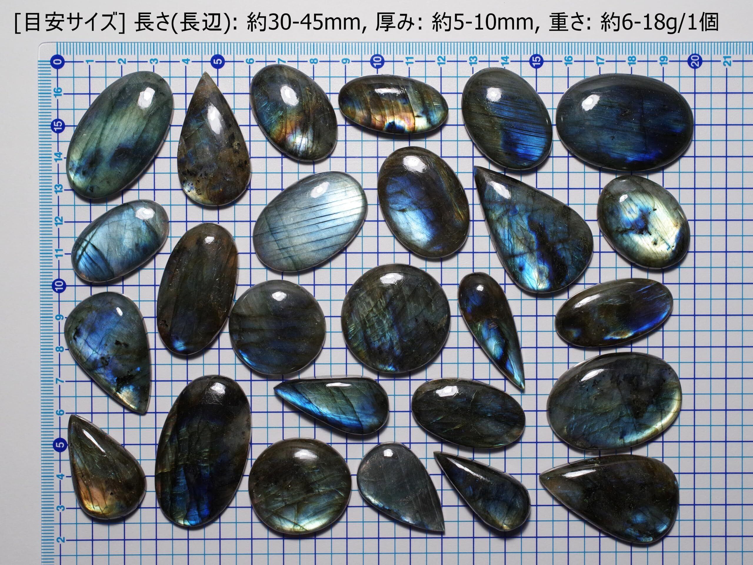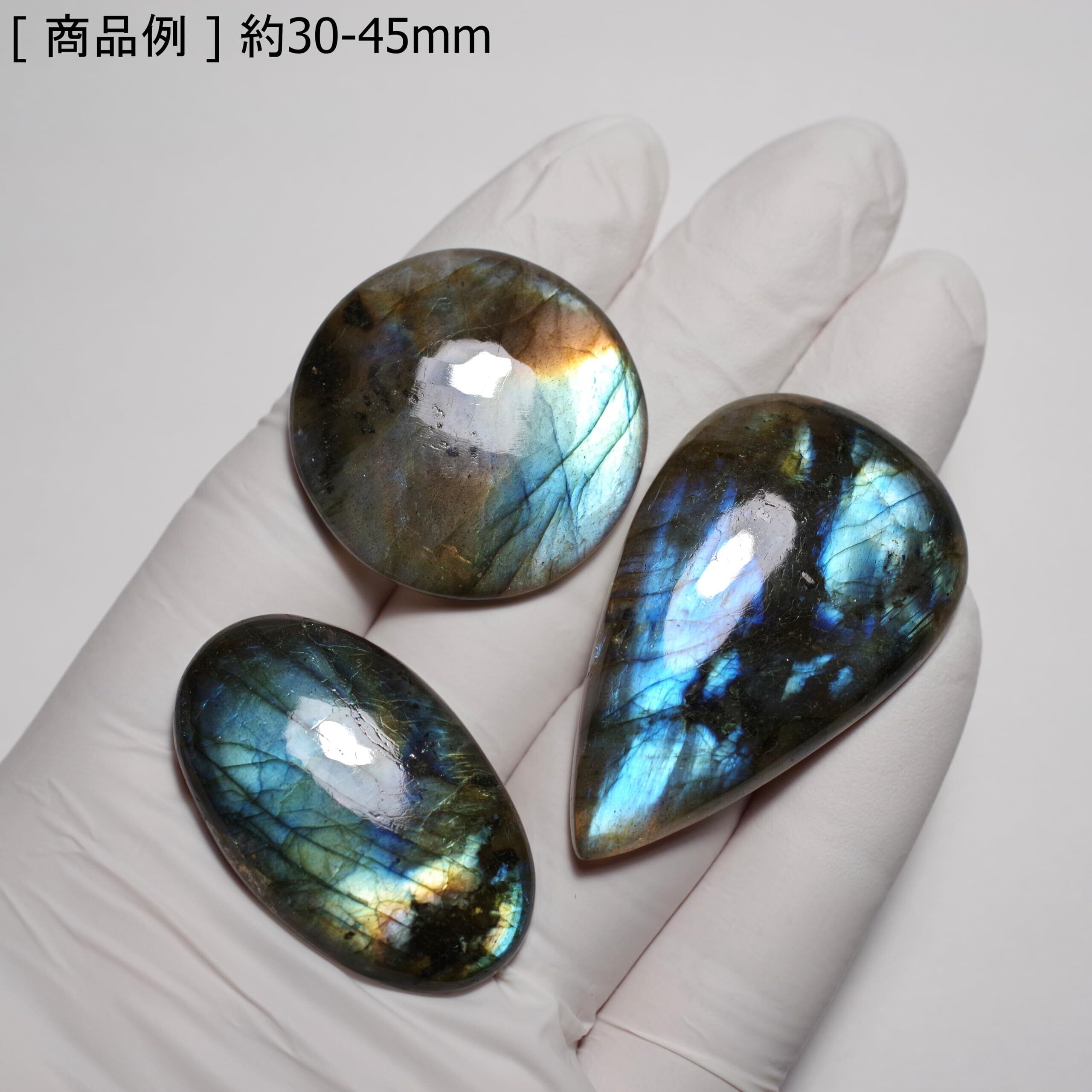 天然鉱物 ラブラドライト (labradorite) カボション -B-Grade- | 長辺 約30-45mm x 3個