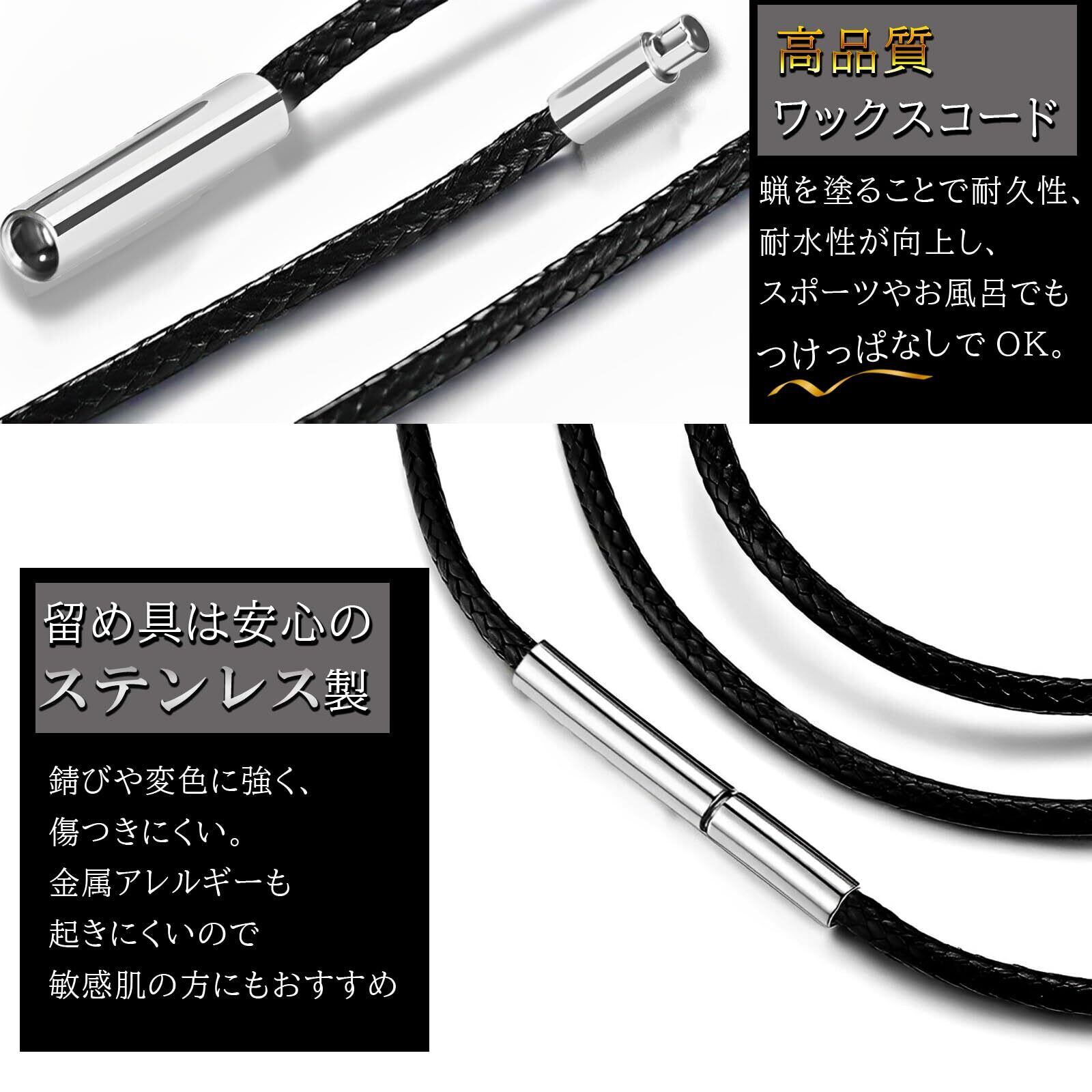 【高品質ワックスコード】ワックスコードとは蝋引き糸、ロウビキ、などとも呼ばれるポリエステル素材に蝋引き加工した紐です。 蝋を塗ることで耐久性が上がり、革紐などに比べると水や汗にも強く、軽量で滑らかな肌触りになるのでスポーツやお風呂など気にせずご使用いただけます。