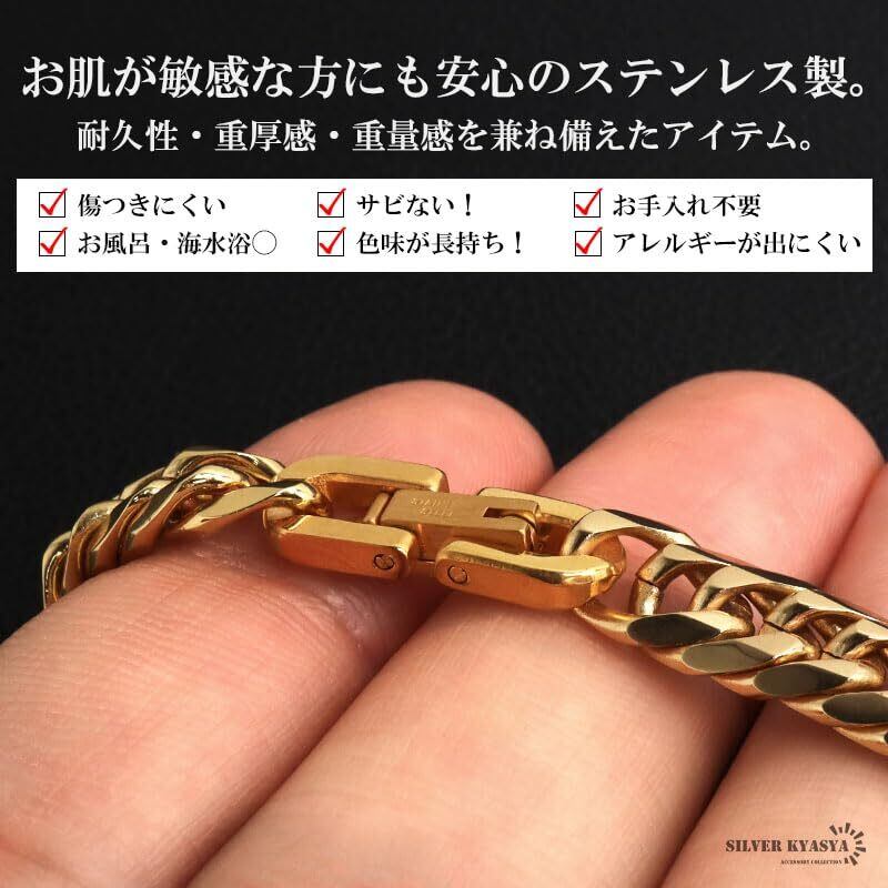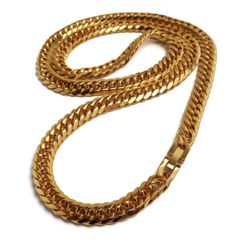 ステンレス 定番 ダブル喜平ネックレス 幅7タイプ チェーンネックレス メンズ 6面カット ゴールド シルバー 燻し 18KGP 長さ4サイズ 細め 太幅 中折れ式留め具 金属アレルギー対応 | 毎日発送✿はなまる